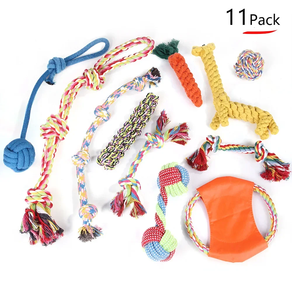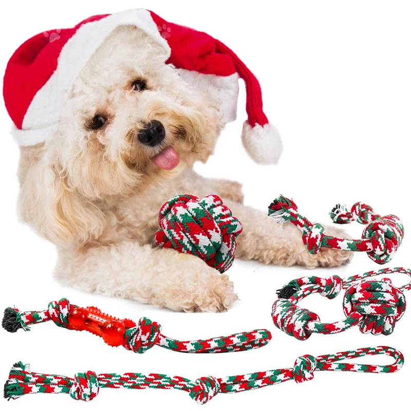 Juguetes para masticar para perros grandes y pequeños, juguete interactivo de cuerda de algodón para cachorros, juguetes para la dentición, bola para perros, cepillo de dientes, juego de juguetes para masticar