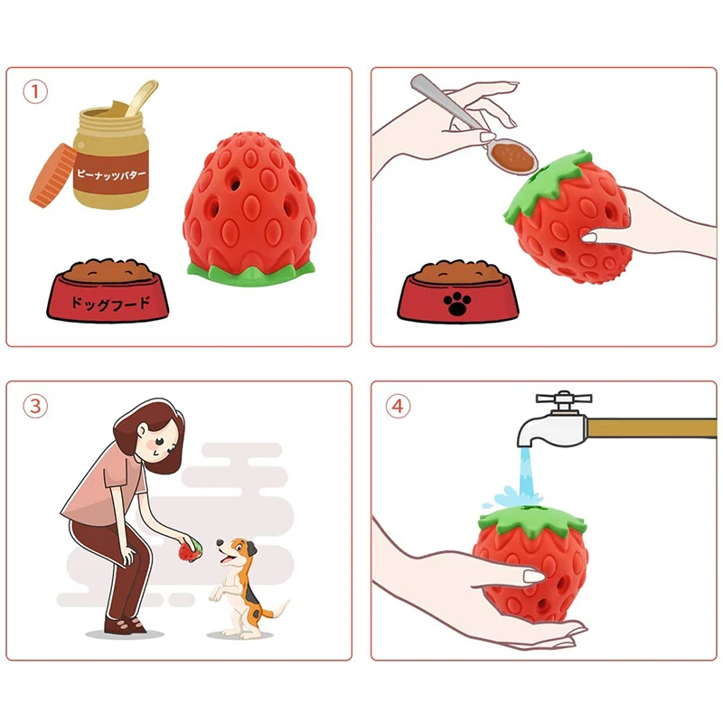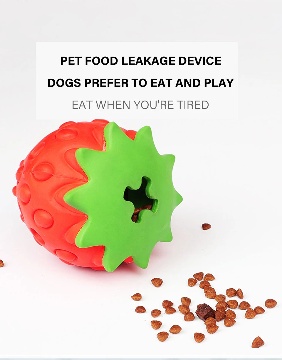 Juguetes para masticar para perros, juguete de goma con forma de fresa para fugas de comida, dispensador de comida duradero y ecológico, juguete para perros