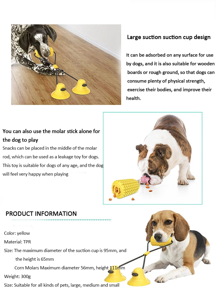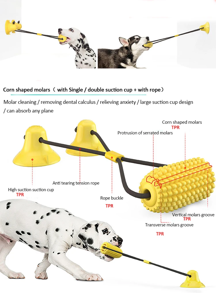 Viene con succión, para que pueda pegarlo a la superficie lisa como la puerta, permitir que el perro juegue con él con más diversión, los perros pueden tirar de él e interactuar con el juguete, así que para reducir el deseo de los perros de romper otros artículos como muebles.