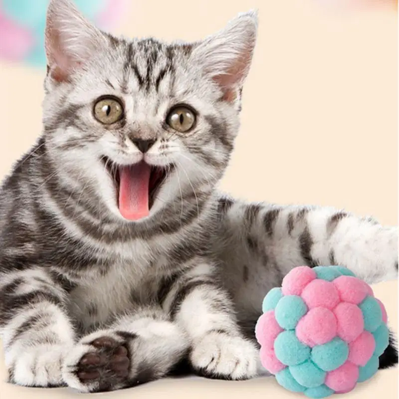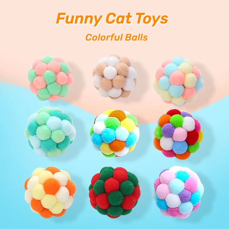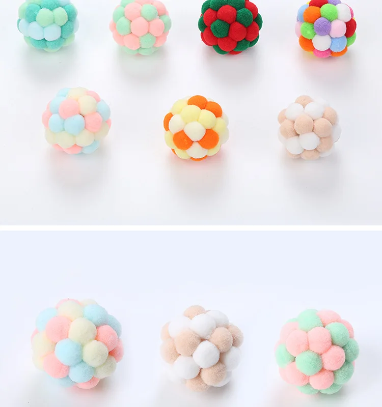 2. Las bolas de felpa de varios colores con sonido de campanas atraen la atención de los gatos.
