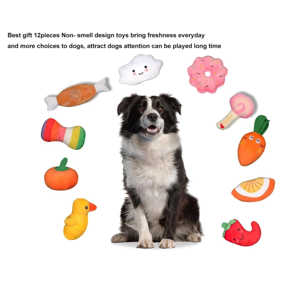 Juguetes de peluche chirriantes para perros, juguetes interactivos para masticar para cachorros duraderos, lindos y suaves, adecuados para pequeños y medianos, paquete de 12