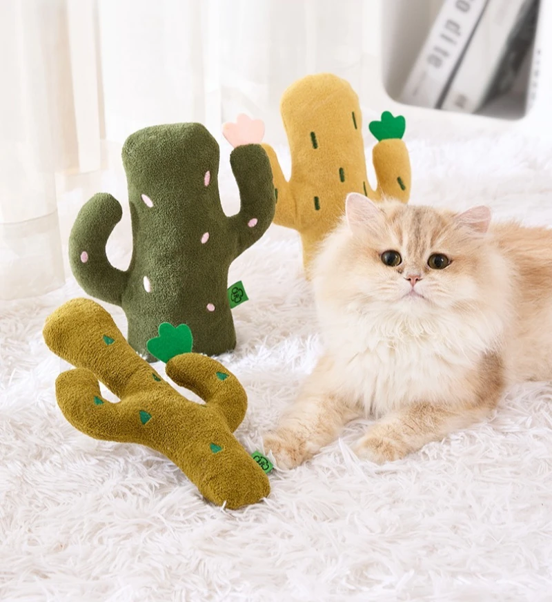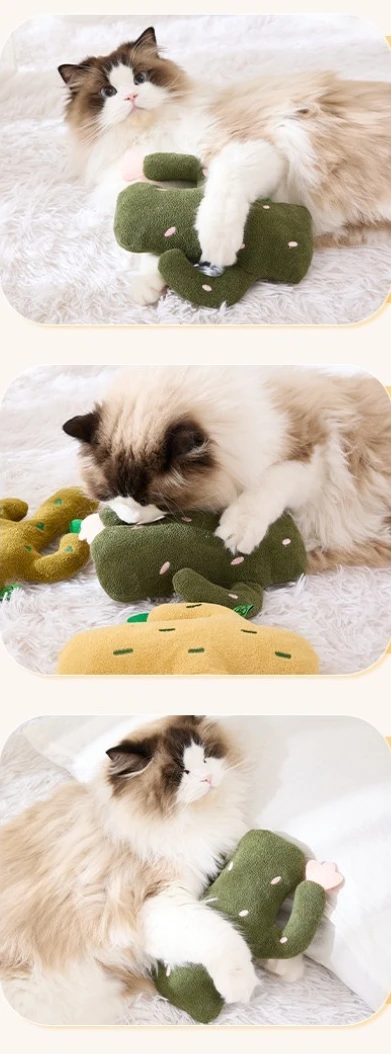 Juguetes de peluche con forma de Cactus para gatos, suministros de juego interactivos para interiores para mascotas, juguete de dientes resistente al masticable de lana para cachorros y gatitos para el hogar