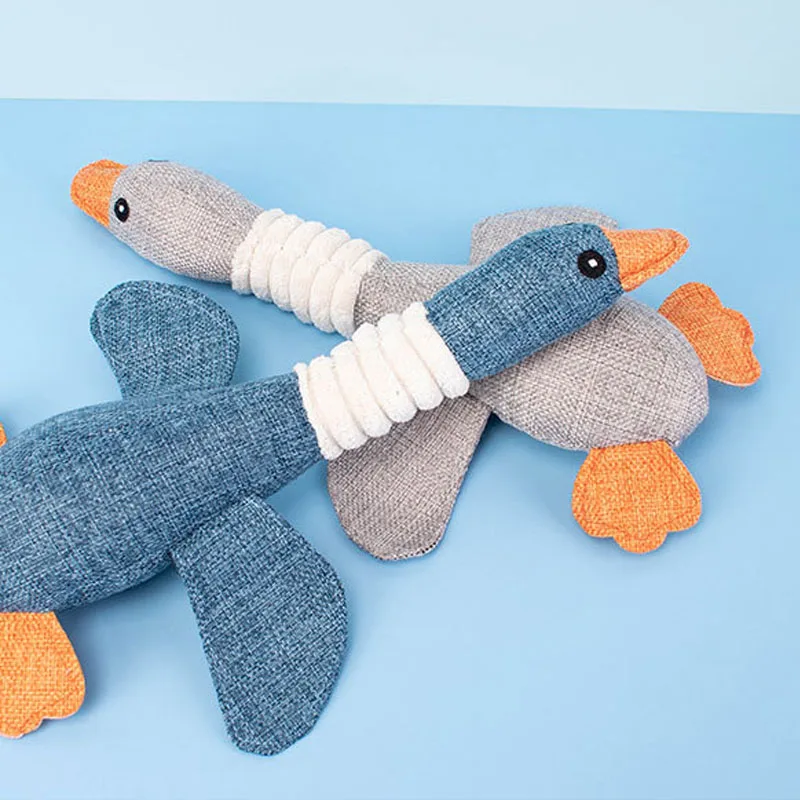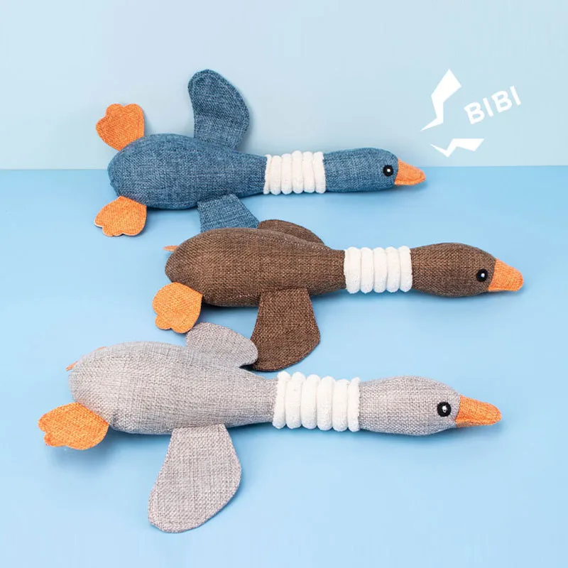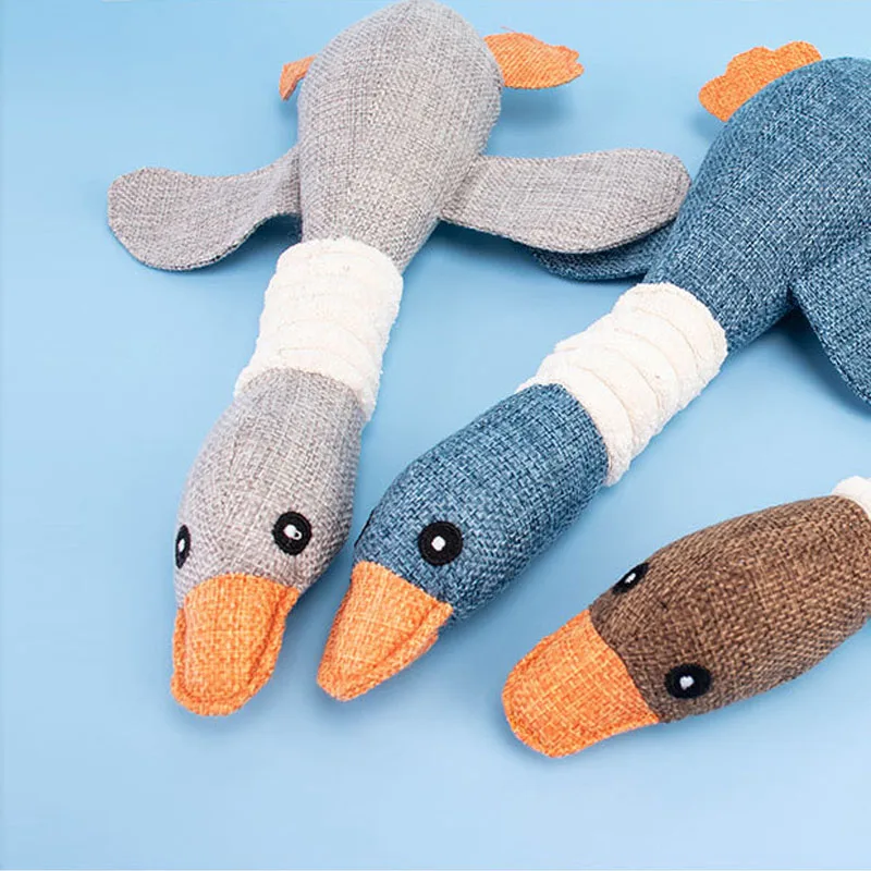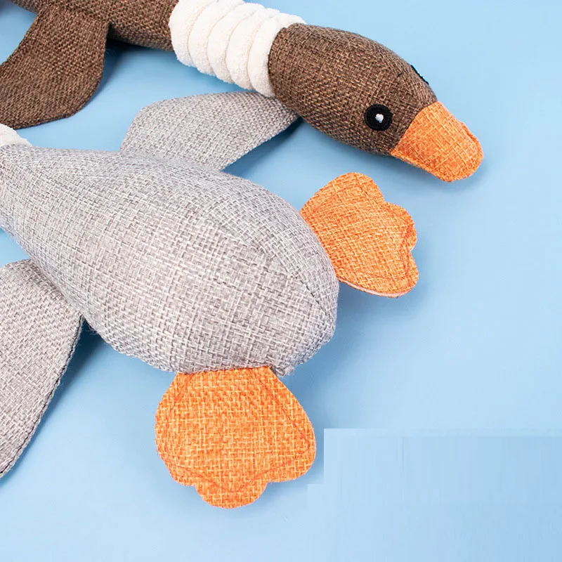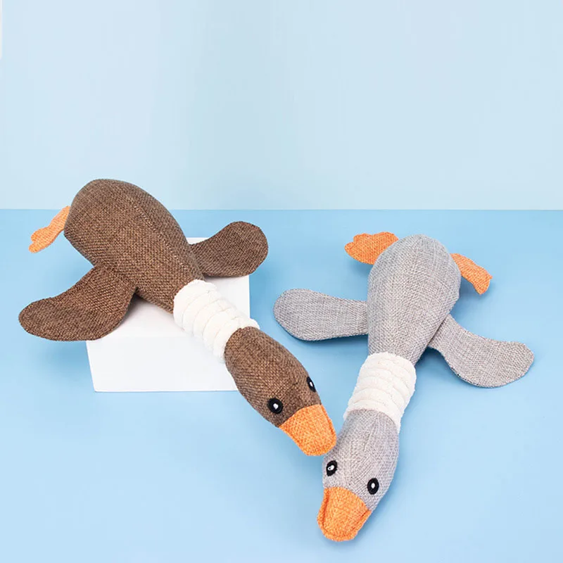 Juguetes de peluche para mascotas, ganso, juguetes de voz para perros, gansos de dibujos animados, molares de lino, resistentes al desgaste, resistentes a mordeduras, juguetes de compañía