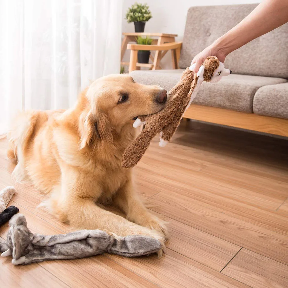 Juguetes de peluche para masticar perros sin relleno, forma de Animal simulado, juguete para masticar perros, juguete duradero para cachorros con chirriantes
