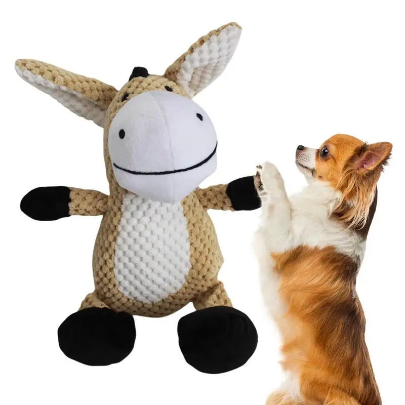 1. Diseño llamativo: Dale a tu amigo peludo un compañero juguetón con nuestro juguete de peluche para perros. Su figura en forma de burro en tonos vivos de color llamará su atención, proporcionando más entretenimiento. Además, su aspecto adorable hará que tu perro se sienta feliz y emocionado.