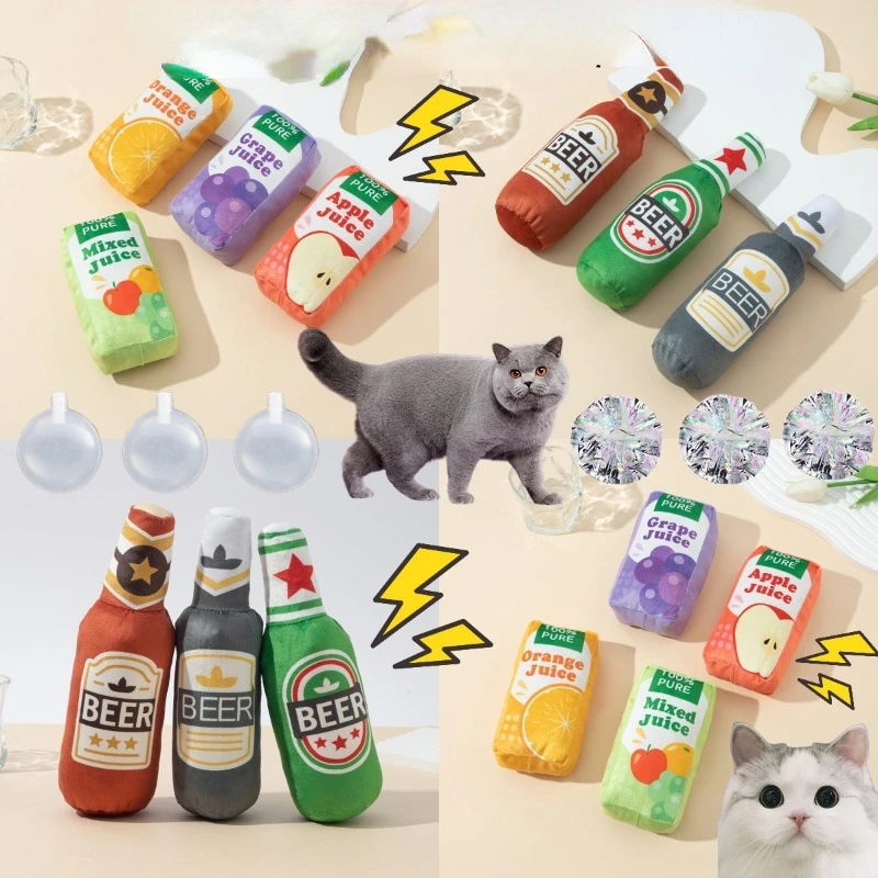Juguetes de peluche para perros, juguete con forma de botella de cerveza, estampado chirriante, resistente a las mordeduras, dientes limpios, suministros para mascotas, juguetes interactivos