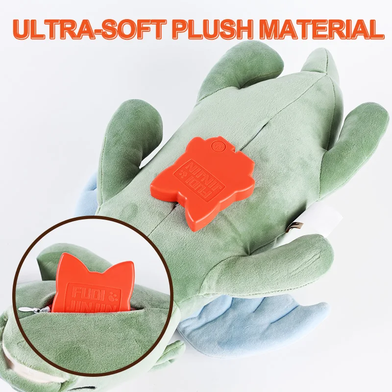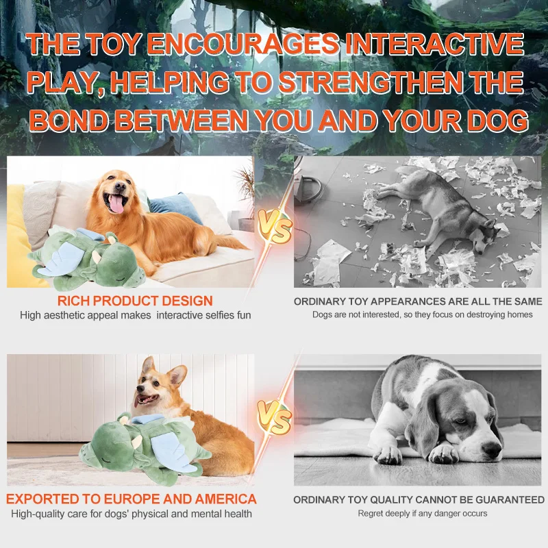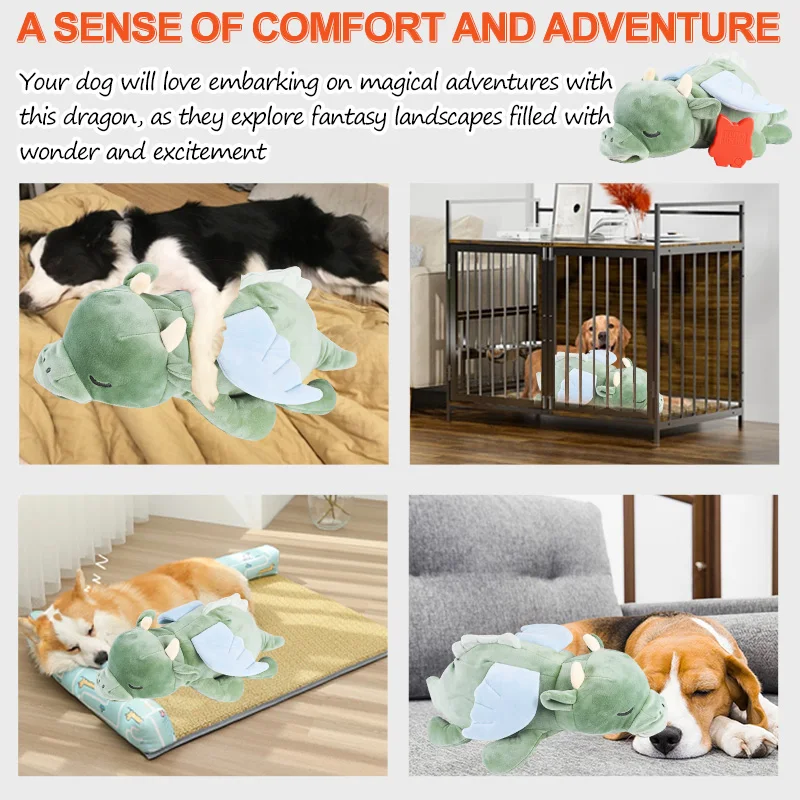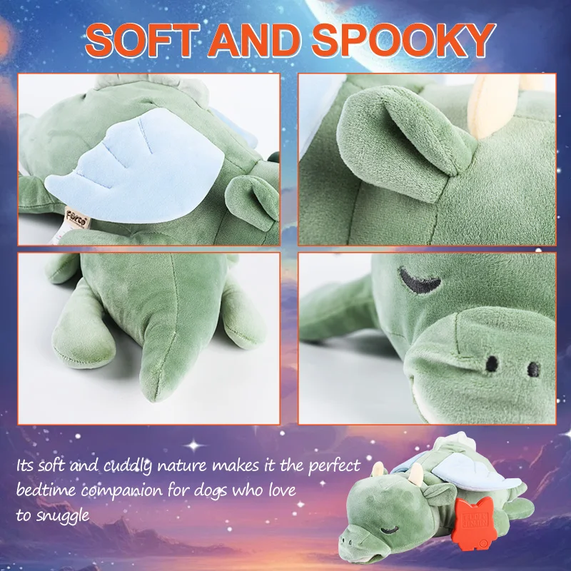 peluche suave ,grande ,para un perro de 30 kilos está bien ,es tal cual foto....peroooooo.....la maquinita que imita al latido ,le da miedo.....,suena fuerte con vibración metálica y si la pongo ,no lo quiere ,lo recomiendo si....y espero que el ruido solo sea el mío