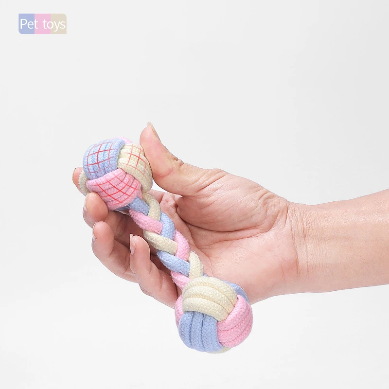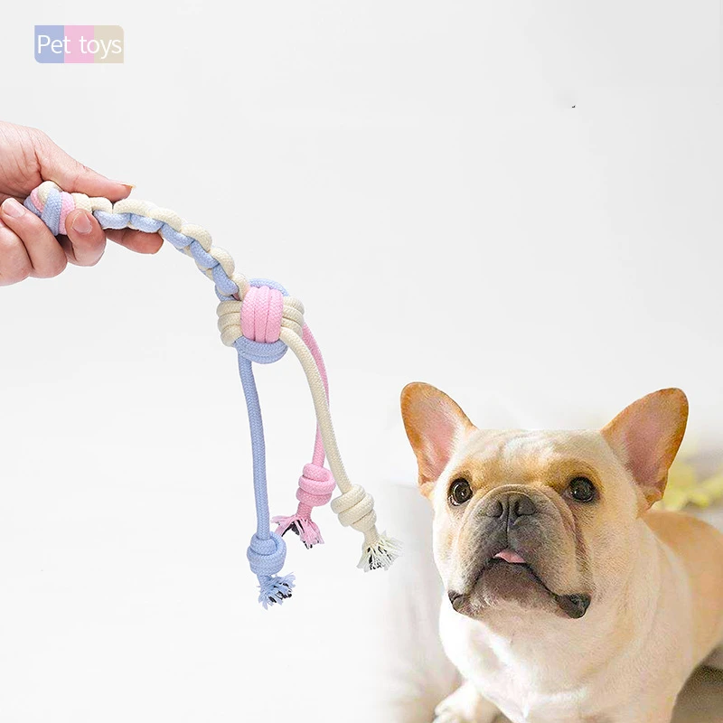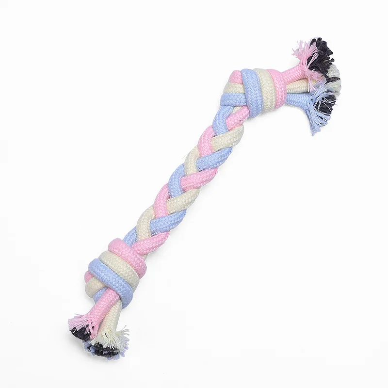 Juguetes Para Perros de algodón con nudo para masticar, cuerda trenzada duradera para mascotas, cachorro, 15CM, herramienta divertida, suministros para mascotas, Color macarrones