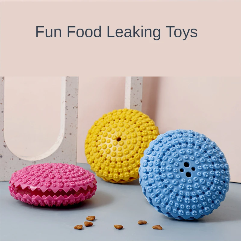 Juguetes para perros, disco volador de goma, fugas automáticas, alimentador lento de alimentos para perros pequeños, medianos, juguetes para morder, resistencia, limpia los dientes.