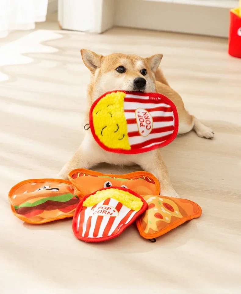Juguetes para perros, hamburguesa, patatas fritas, comida de imitación, juguete con sonido, juego en casa para las cuatro estaciones, entretenimiento para la dentición, suministros para mascotas, 1 ud.