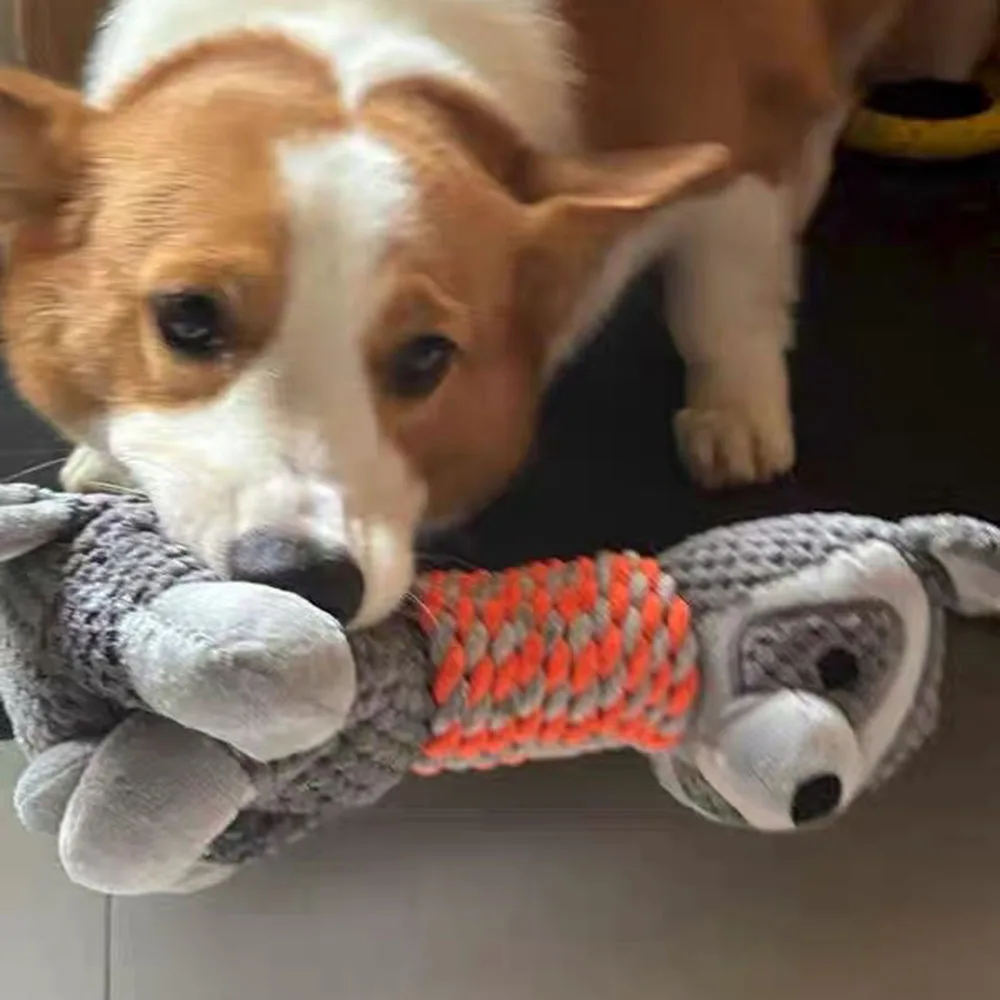 Juguetes para perros con jirafa y mapache, juguetes para mascotas chirriantes de felpa con cuerda de algodón, buster de aburrimiento molar para masticar duradero,