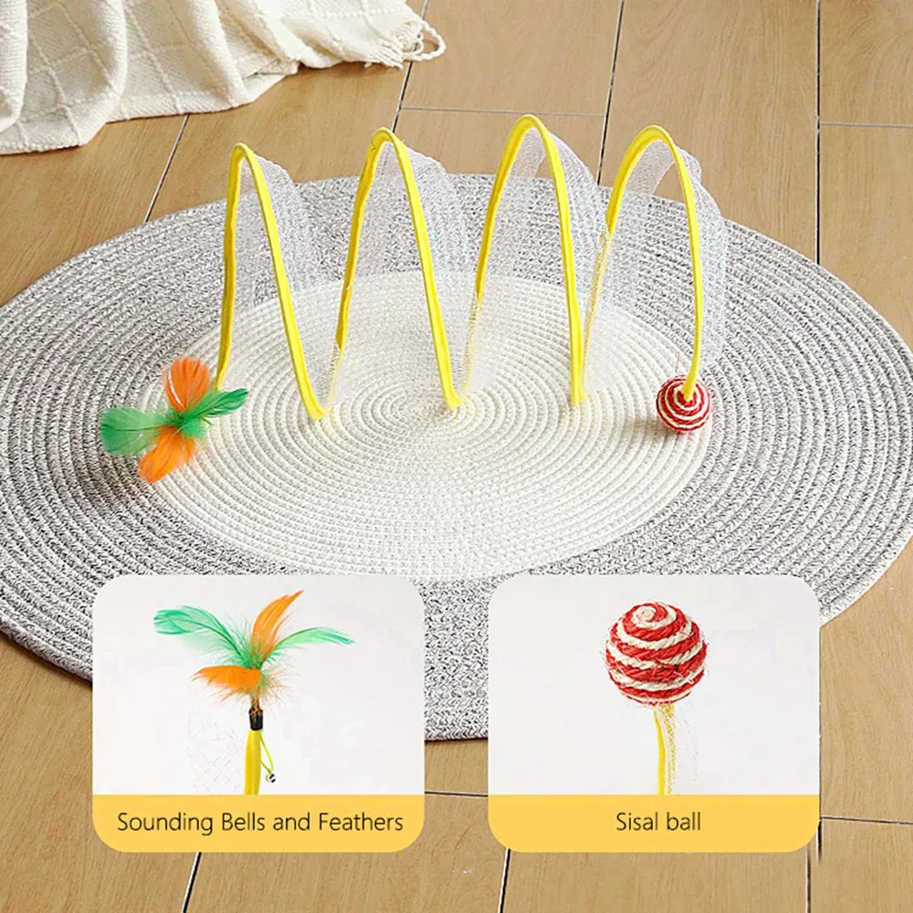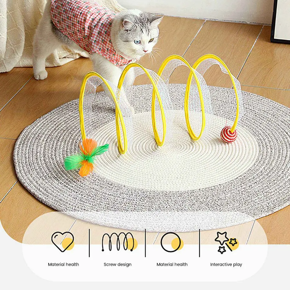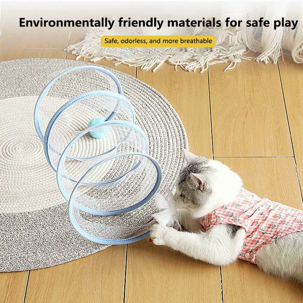[Juguetes para entretenimiento personal]: Los juguetes en el túnel están colgados para disfrutar del gato, lo cual es conveniente para que el dueño interactúe con la mascota, y cuando no esté allí, los animales pequeños también pueden jugar solos.