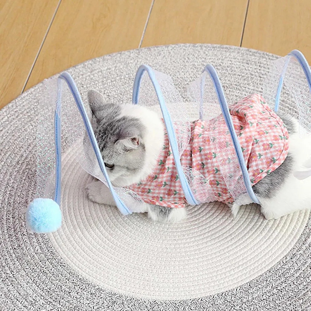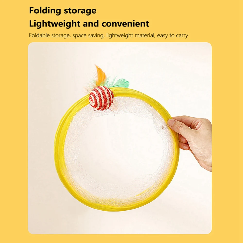 [Plegable]: Túnel plegable para un almacenamiento compacto y transporte de viaje, se puede plegar y almacenar fácilmente cuando no esté en uso.¡Es conveniente llevarlo a cualquier parte, para que tu mascota nunca se aburra!
