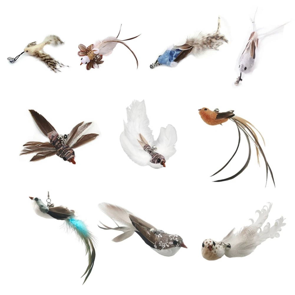 Este juguete de plumas para gatos está equipado con 10 cabezas de repuesto de diferentes colores. Cada cabeza de repuesto de pluma tiene una campana.