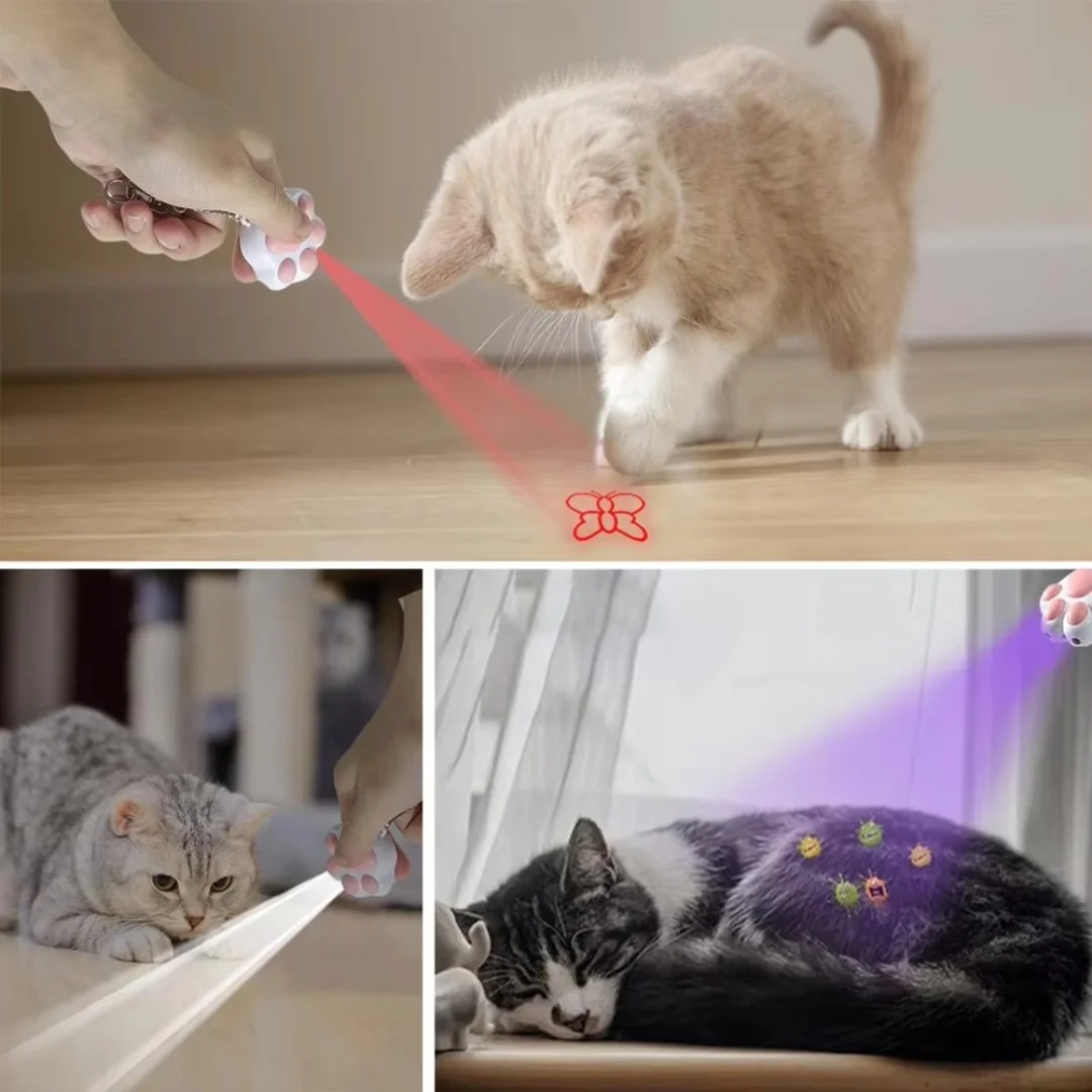 Juguetes rompecabezas infrarrojos 4 en 1 para gatos, llavero con iluminación, multifuncional, recargable, varios patrones, juguete de entrenamiento con carga Usb