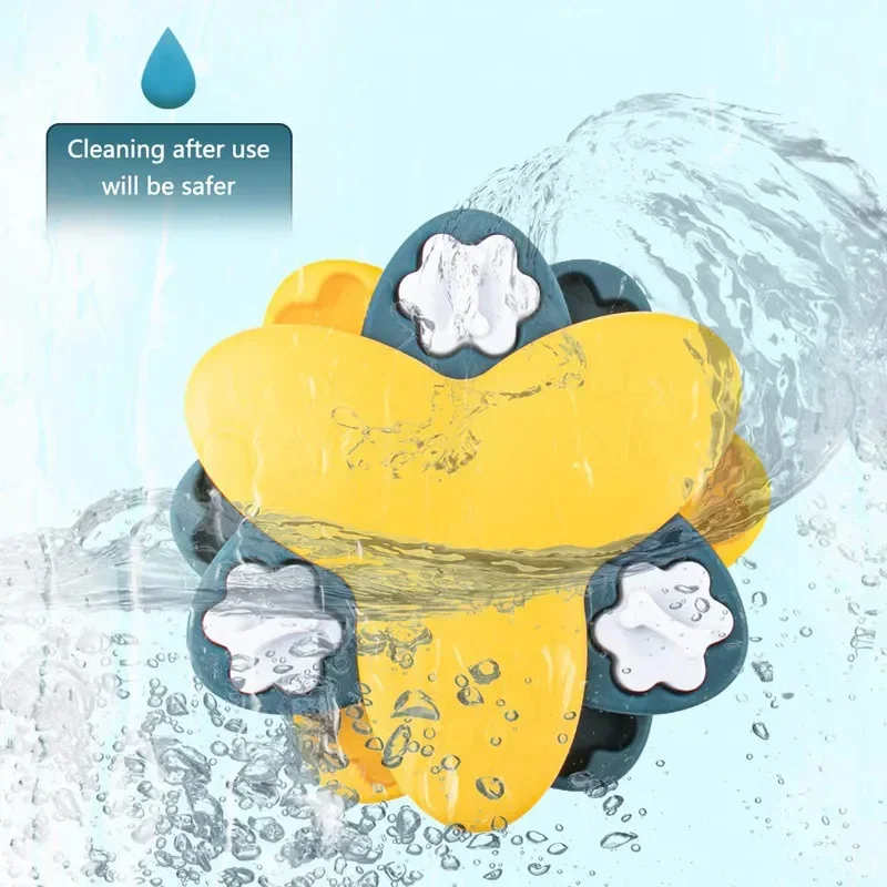 Easy to Clean and Anti-skid Design at Bottom: This slow feeder toy is easy to wash, just wash by hand with mild soap and warm water. Make sure all compartments are dry before using it. The basin bottom is equipped with a rubber anti-slip pad, pet arch, dial, and other actions that caused the food box displacement to overturn.