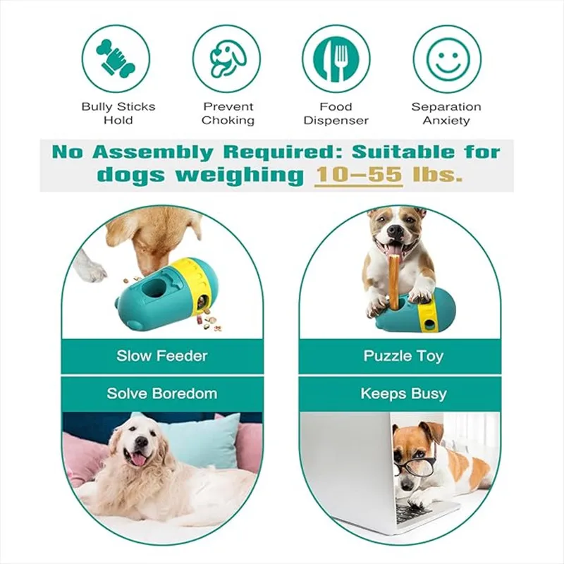 🐶Diseño que atrae a perros🐕Este es un juguete multifuncional para perros que sirve como soporte para palos de bully, evitando riesgos de asfixia y bloqueo durante las sesiones de masticación, el soporte para palos de bully reduce significativamente los riesgos de asfixia. También funciona como un juguete dispensador de comida para mascotas, liberando comida mientras los perros empujan o mueven el juguete durante el juego, un juguete que estimula mentalmente para perros.