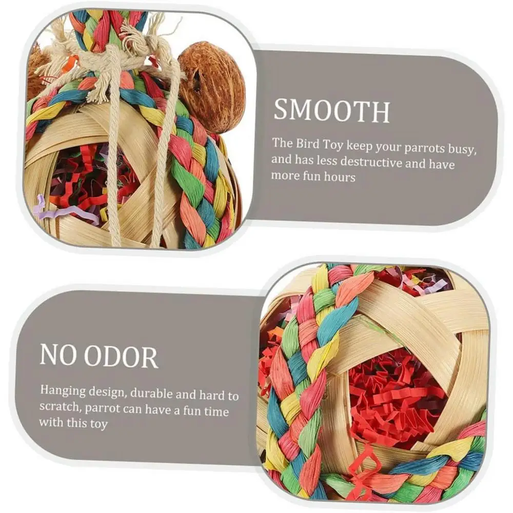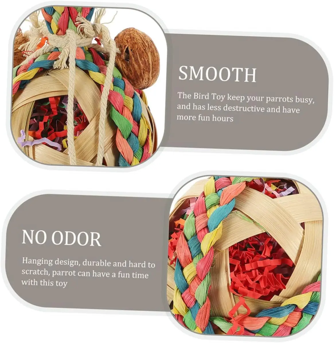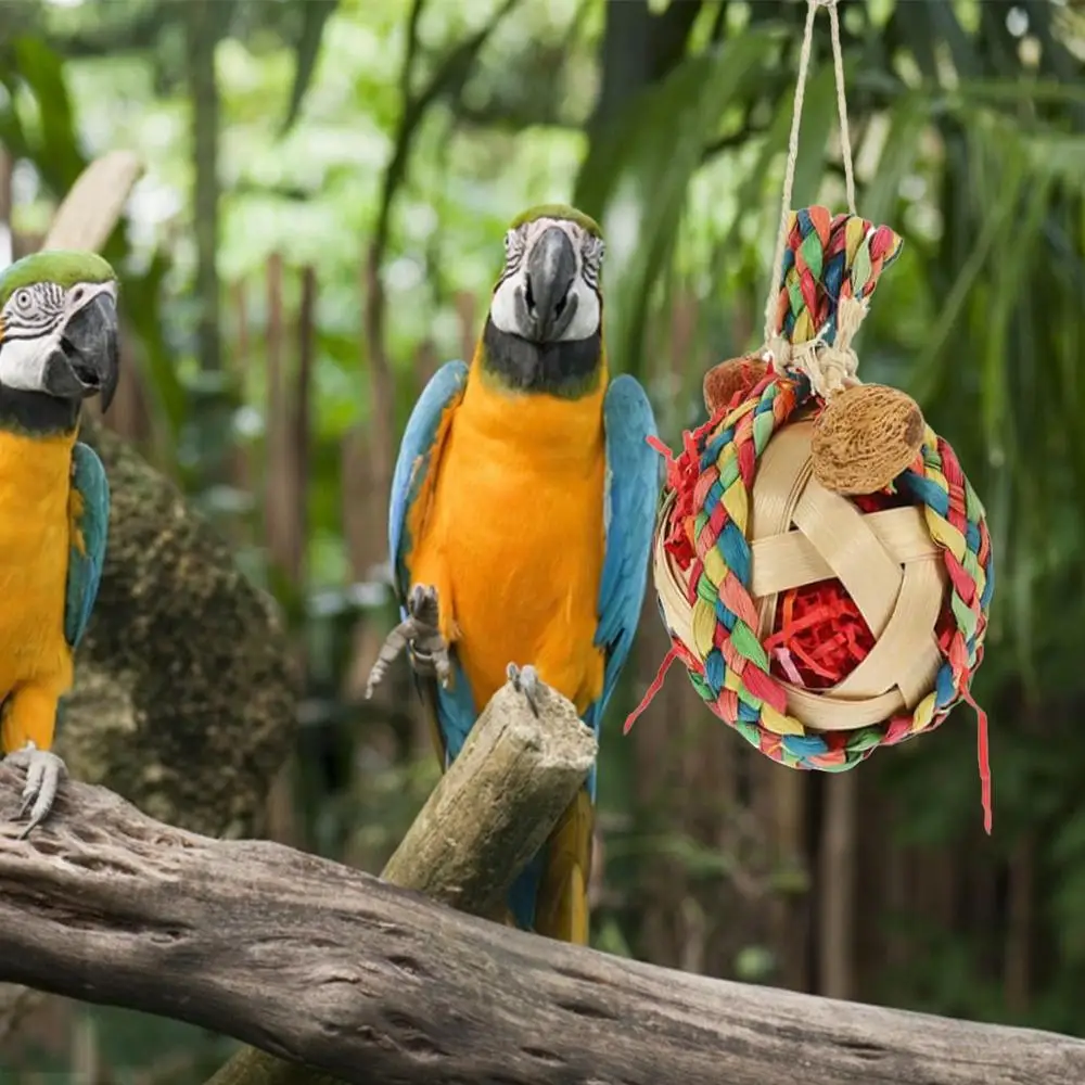 Parrot Toy es un juguete colorido y divertido para tus amigos emplumados.Ayuda a los pájaros a rechinar los dientes y mantenerlos sanos.El diseño del cordón hace que sea fácil de colgar en la jaula o en cualquier lugar que desee.El juguete está fabricado con materiales seguros que no afectarán la salud de los loros.Es un gran regalo para el cumpleaños de tu loro o cualquier ocasión.