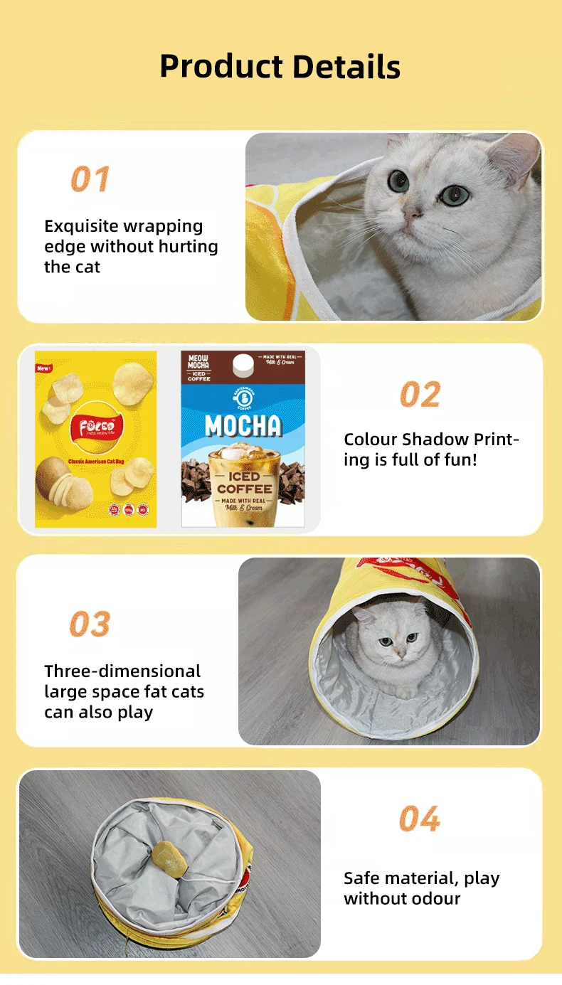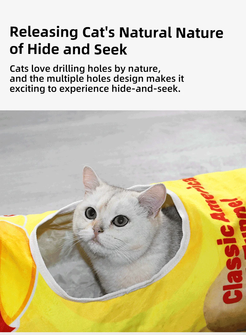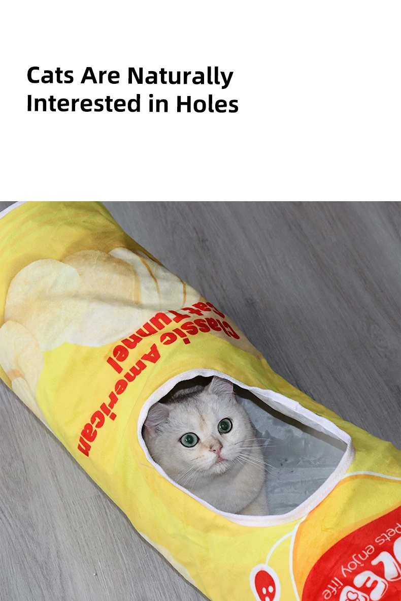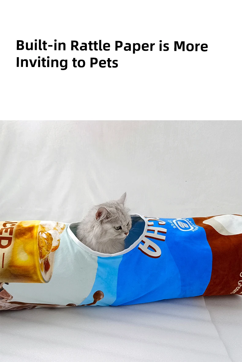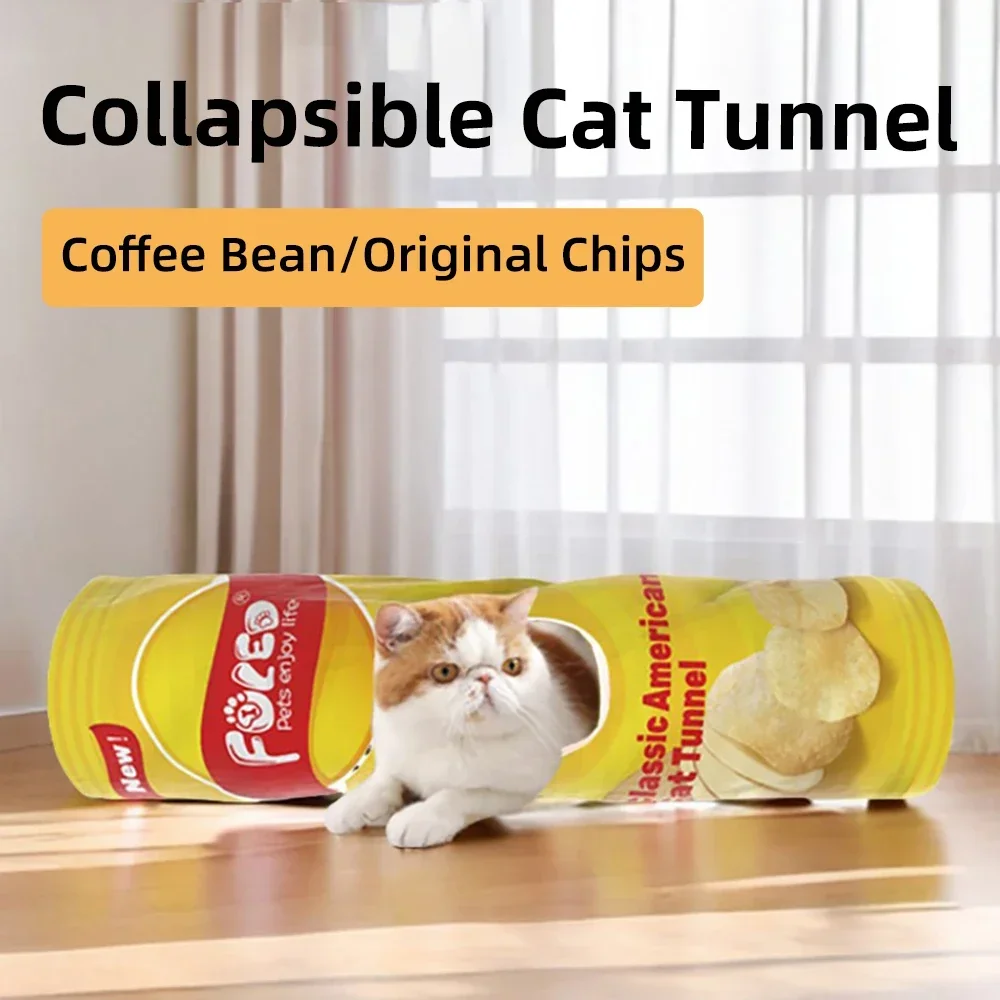 Juguetes de túnel de taladro para gatos, tubo recto de Chips de café, escondite plegable para gatos, juguetes interactivos, suministros para mascotas