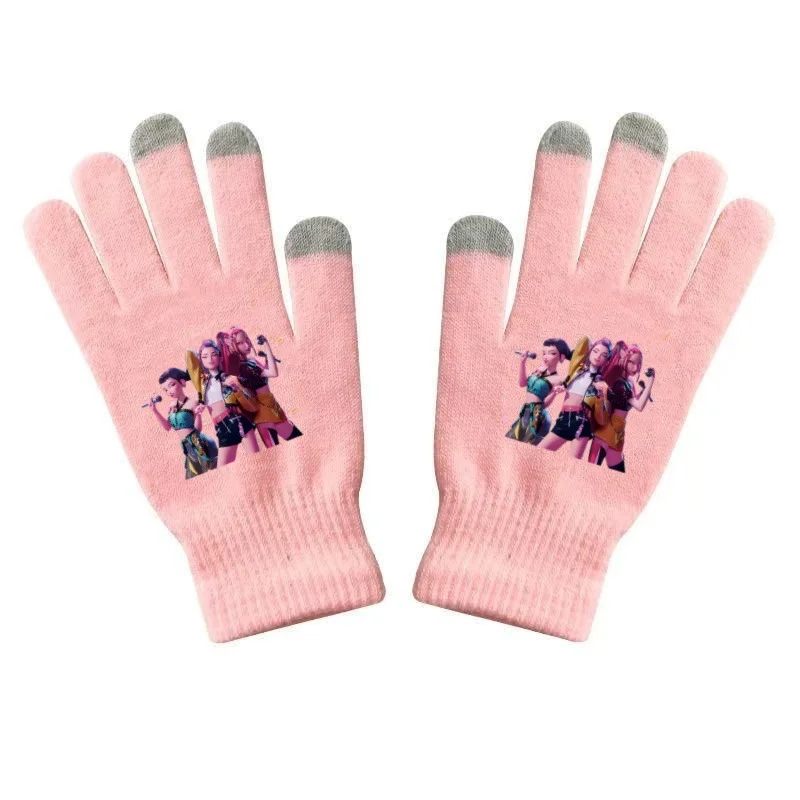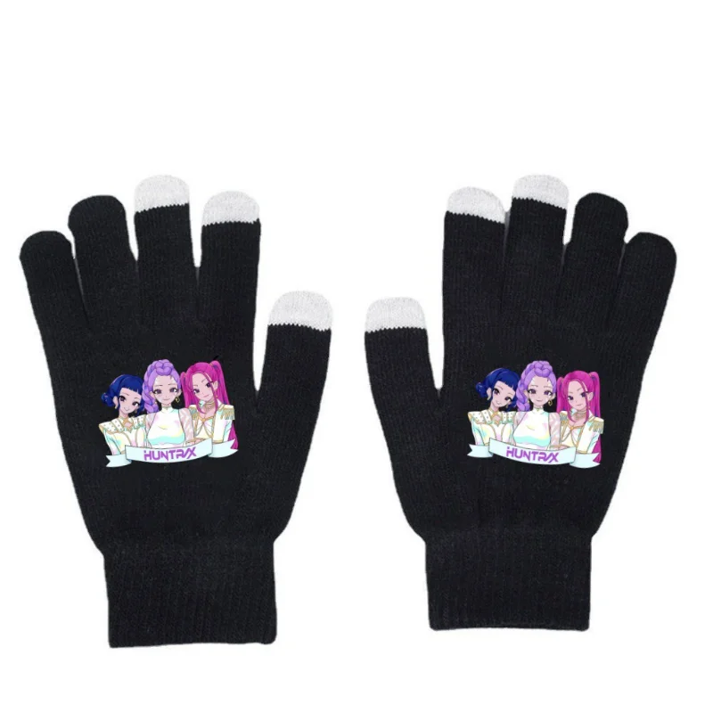 K-pops-guantes para niñas cazadores de demonios, guantes tejidos con estampado de dibujos animados Kawaii, guantes cálidos de invierno para exteriores, regalos de cumpleaños para niños
