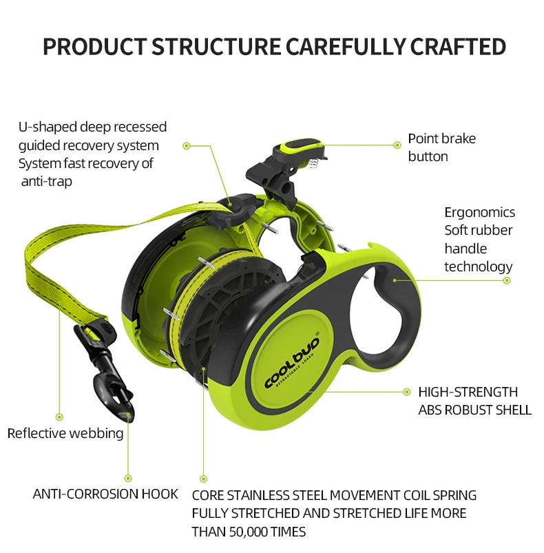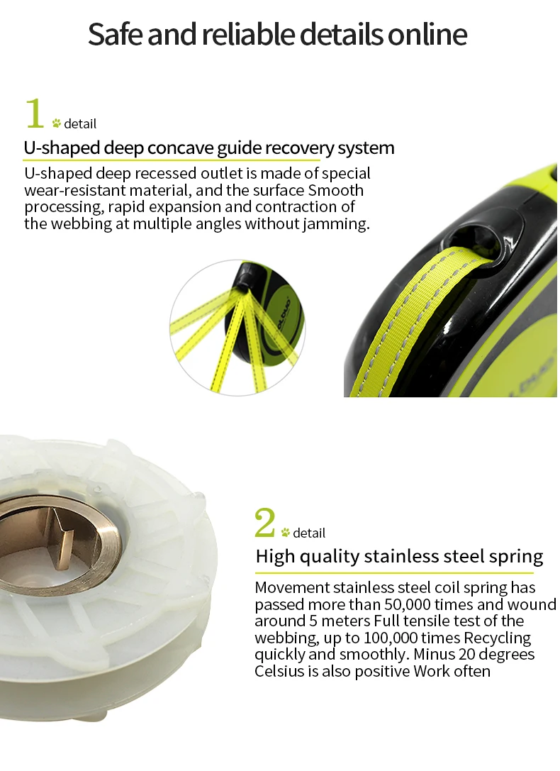 Se extiende hasta 16 pies, lo que no solo le da a los perros suficiente libertad para caminar, sino que también hace que no tenga que seguir a sus perros muy de cerca.