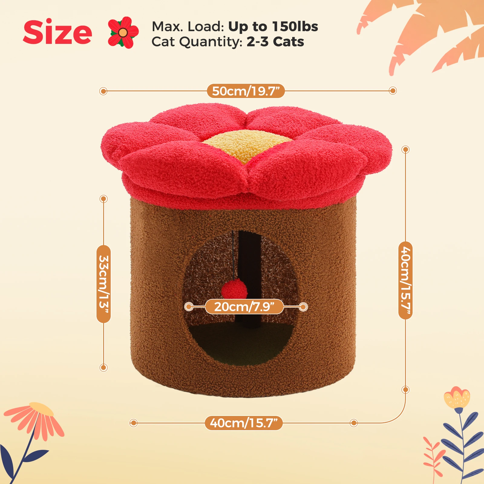 Cama para gatos de flores grandes: esta adorable cama para gatos de interior con una percha para gatos extraíble súper grande [Dia=20"], permite una fácil limpieza y mantenimiento.El lindo diseño de esta casa para gatos de flores seguramente atraerá la atención de su gato y brindará un lugar de descanso acogedor para más de una casa.
