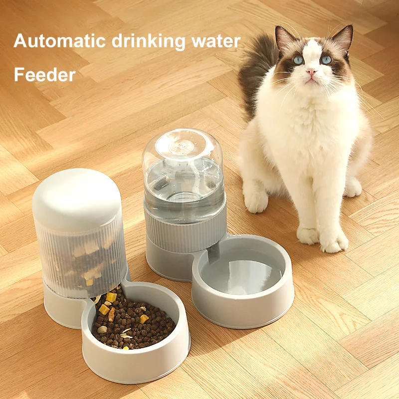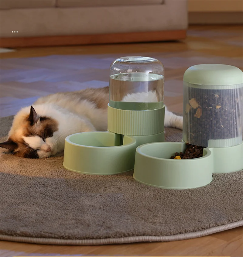 Kimpets-dispensador automático de comida para perros y gatos, cuenco alimentador para mascotas, combinación de cuenco de agua de alimentación automática transparente