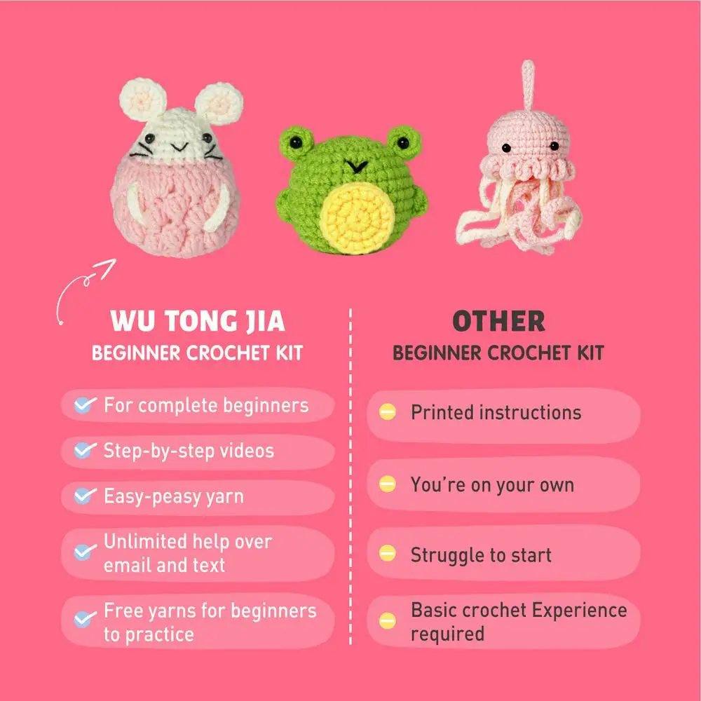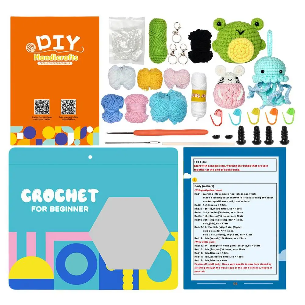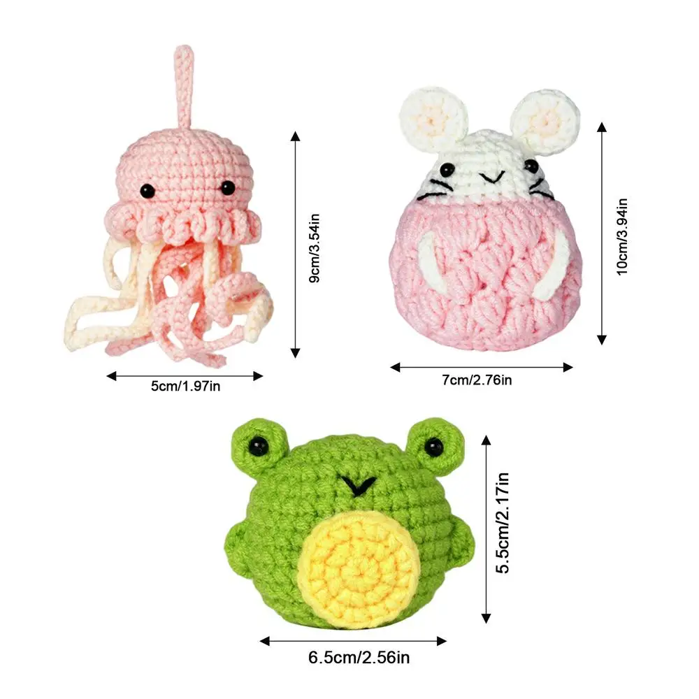 1. de ganchillo Kit completo: este kit proporciona materiales y herramientas para un conjunto completo de 3 lindos animales (ratón, pulpo, Rana) que puede tejer usted mismo. Disfrute de la diversión DIY y haga sus propios adorables juguetes de ganchillo con facilidad. Este kit es adecuado para principiantes y le brindará una buena experiencia.