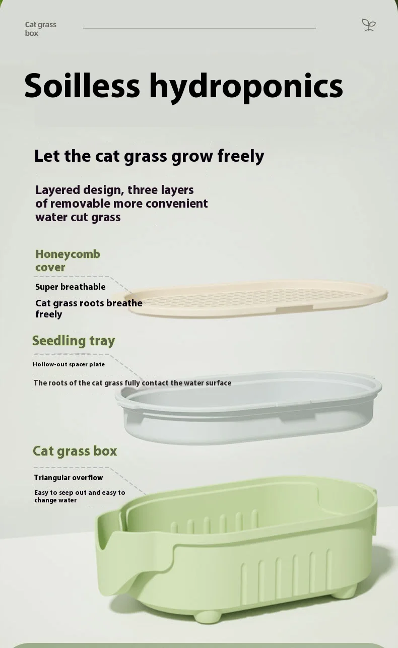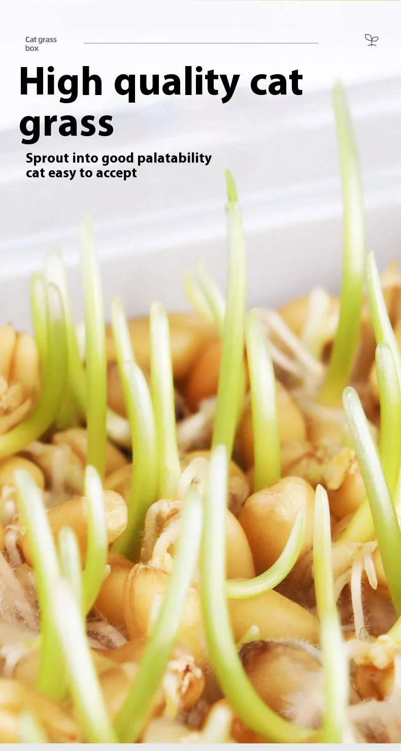 Las semillas crecen bien, pero es una pena que el último agujero en forma de panal esté solo colocado y no fijado porque cuando los gatos comen, todos salen.