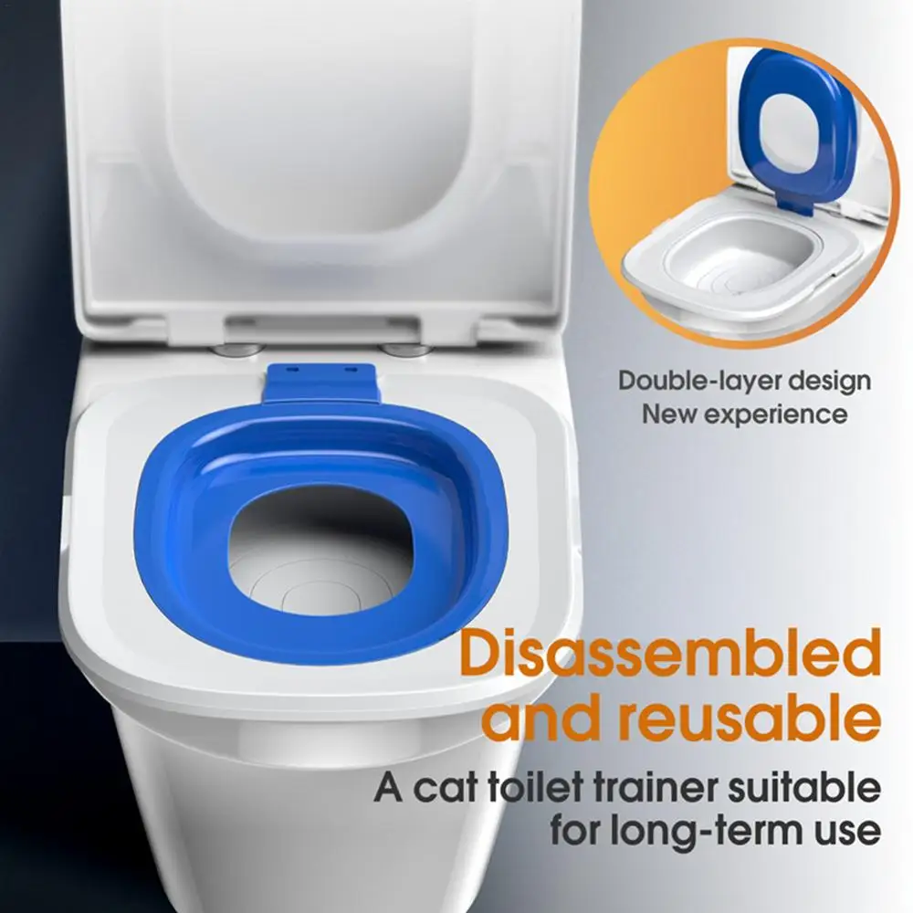 5. Función práctica: el kit de entrenamiento para el inodoro para gatos garantiza la practicidad en el entrenamiento del inodoro para gatos, con un diseño intuitivo que ayuda a los gatitos a entenderlo y usarlo fácilmente. El entrenamiento constante ayuda a entrenar a los gatos para usar los baños humanos.