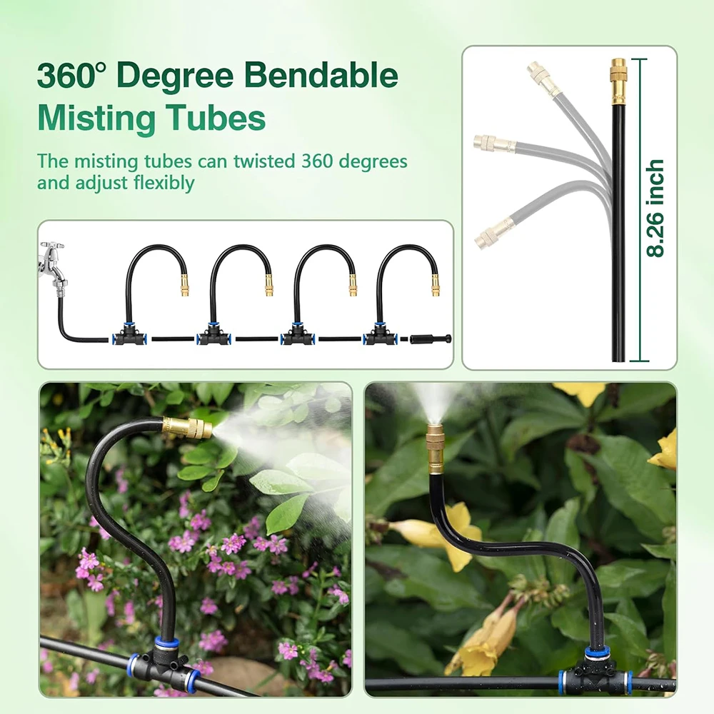 En comparación con los sistemas de riego tradicionales, este sistema de riego por nebulización flexible es fácil de girar en cualquier dirección, lo cual es mucho más conveniente que la mayoría de los sistemas de riego normales.