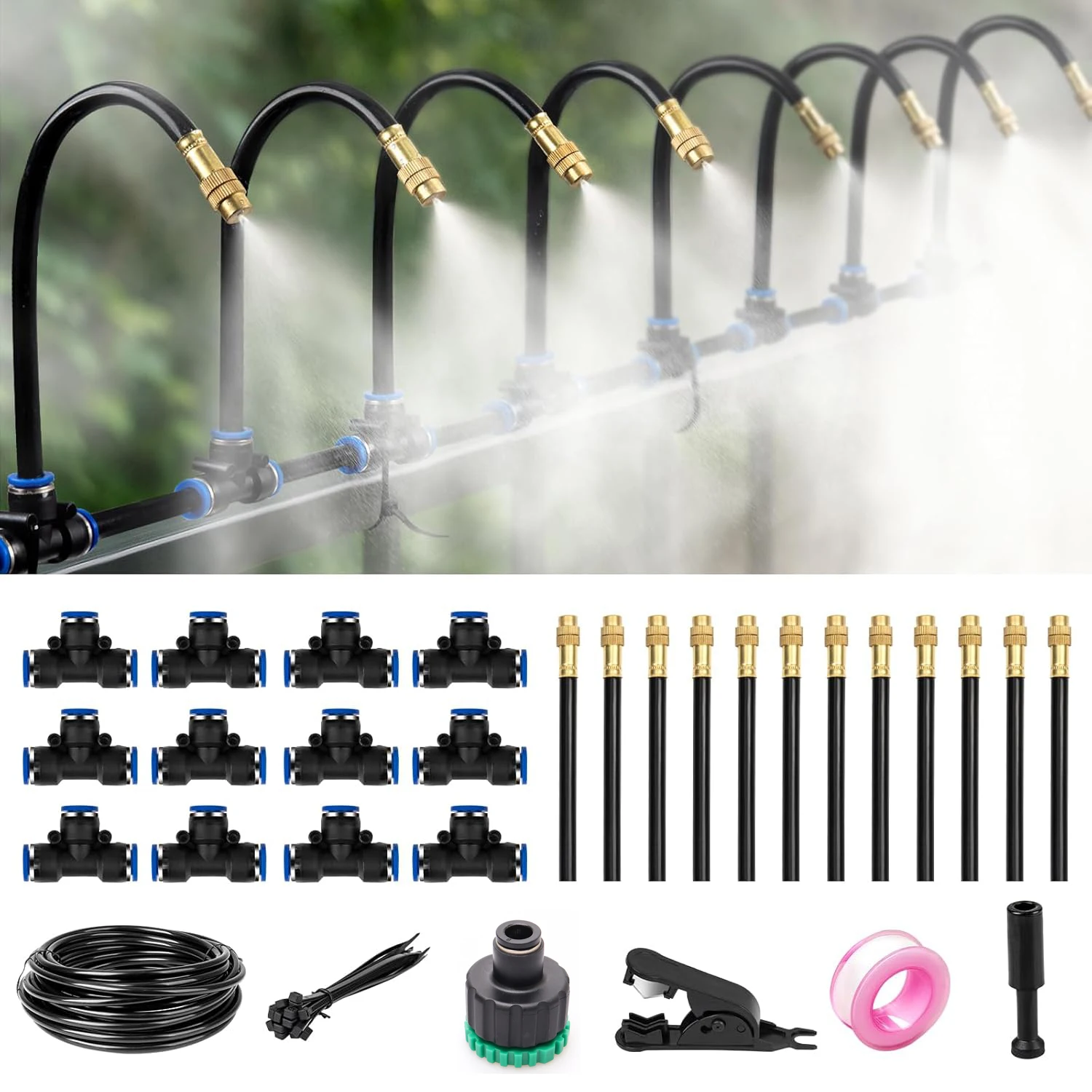 Kit de sistema de riego por goteo automático con sistema de nebulización ajustable y flexible de 10 m.