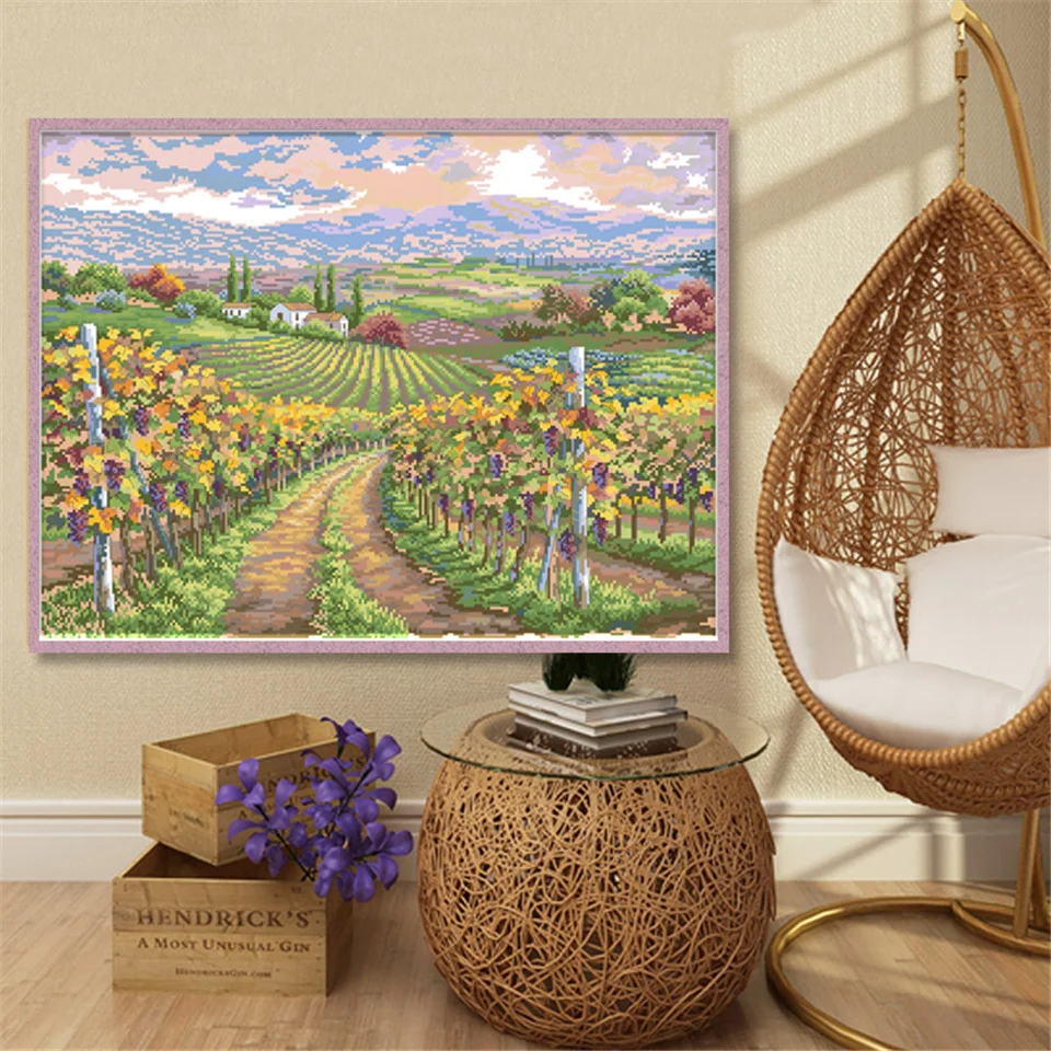 Viñedo Diy costura Kits de punto de cruz contados tela impresa paisaje bordado 11CT 14CT conjunto de punto de cruz decoración del hogar