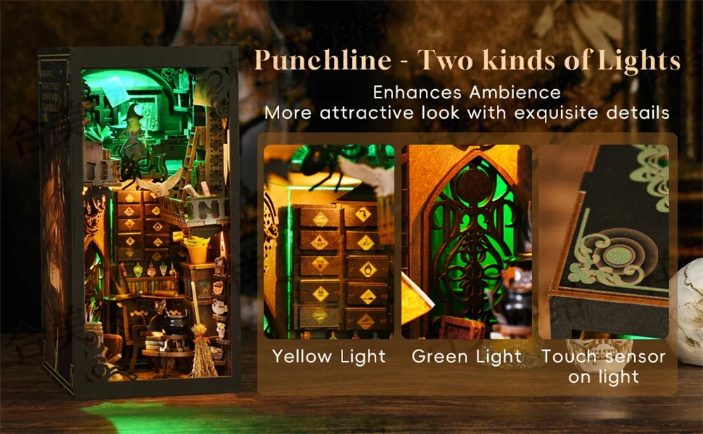 Kit de rincón de libros, kit de estantería de casa de muñecas en miniatura DIY, sujetalibros de rompecabezas de madera 3D, decoración de inserción de estantería, luz LED para adolescentes y adultos