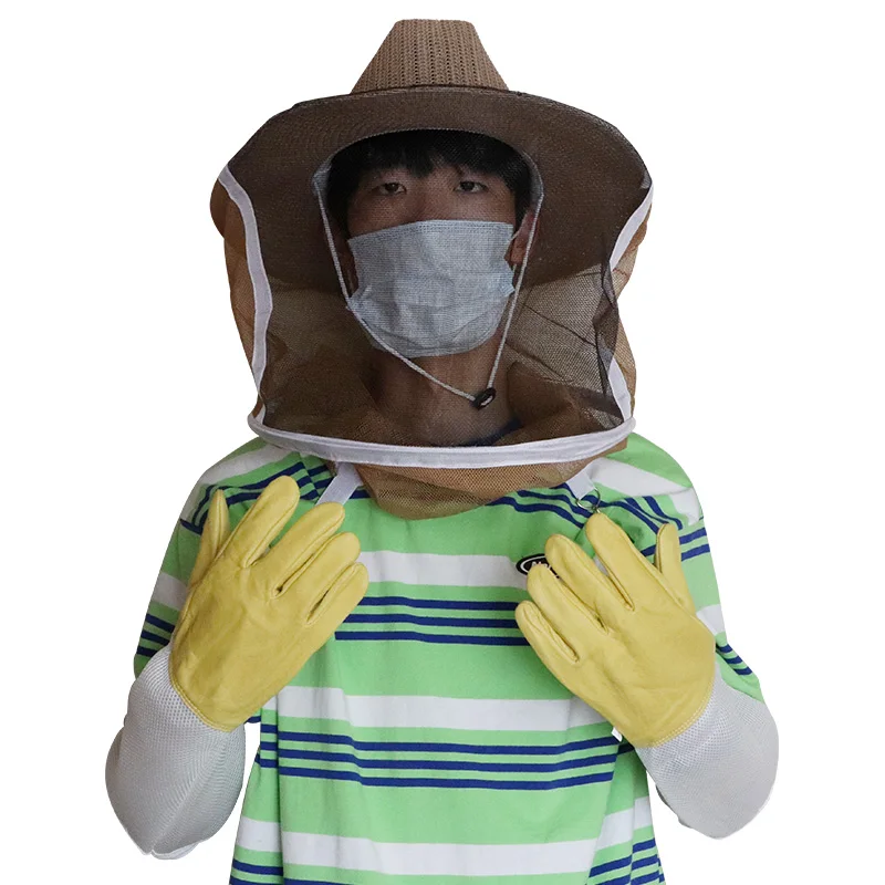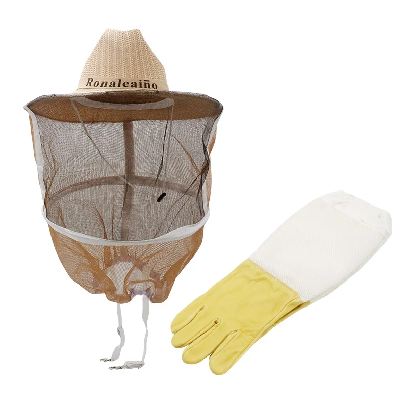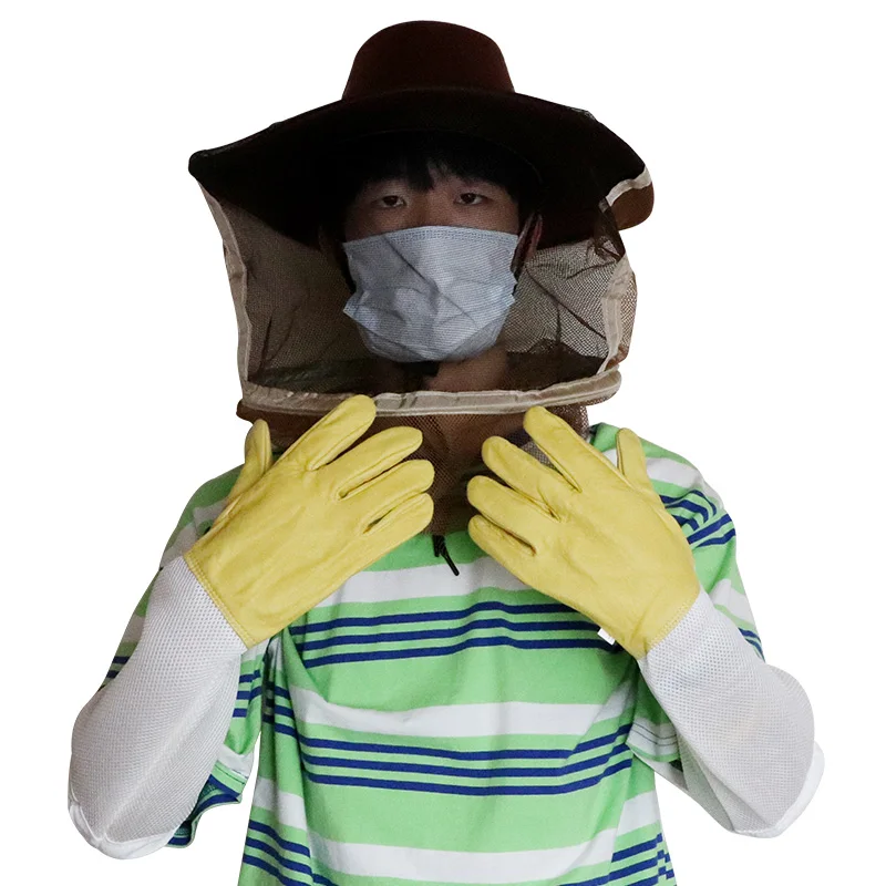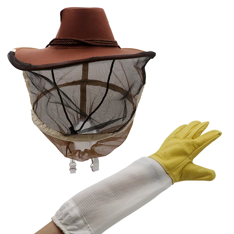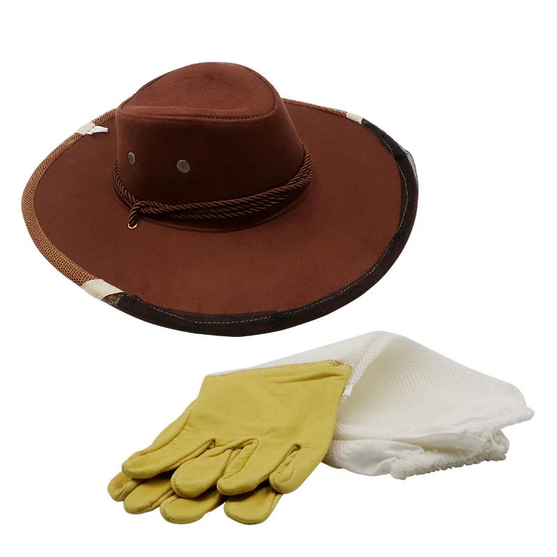 Kit de ropa protectora de apicultura, guantes de cuero y 1 piezas, antiabejas y picaduras, sombrero de vaquero, herramienta de apicultura transpirable, 1 par
