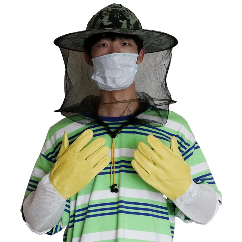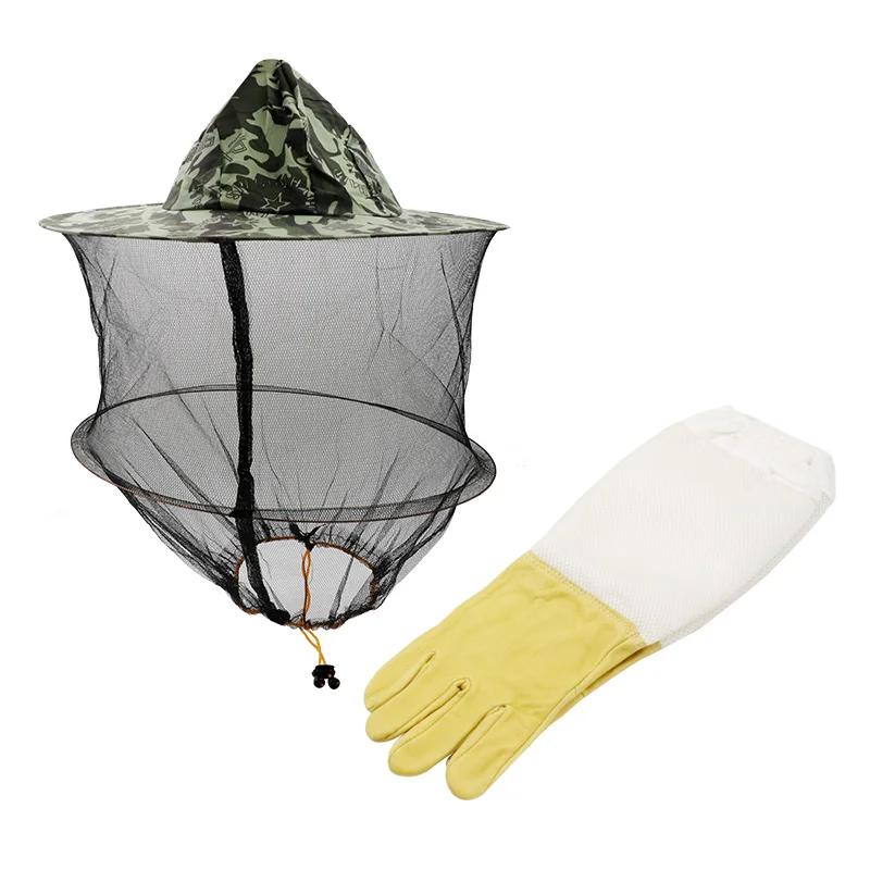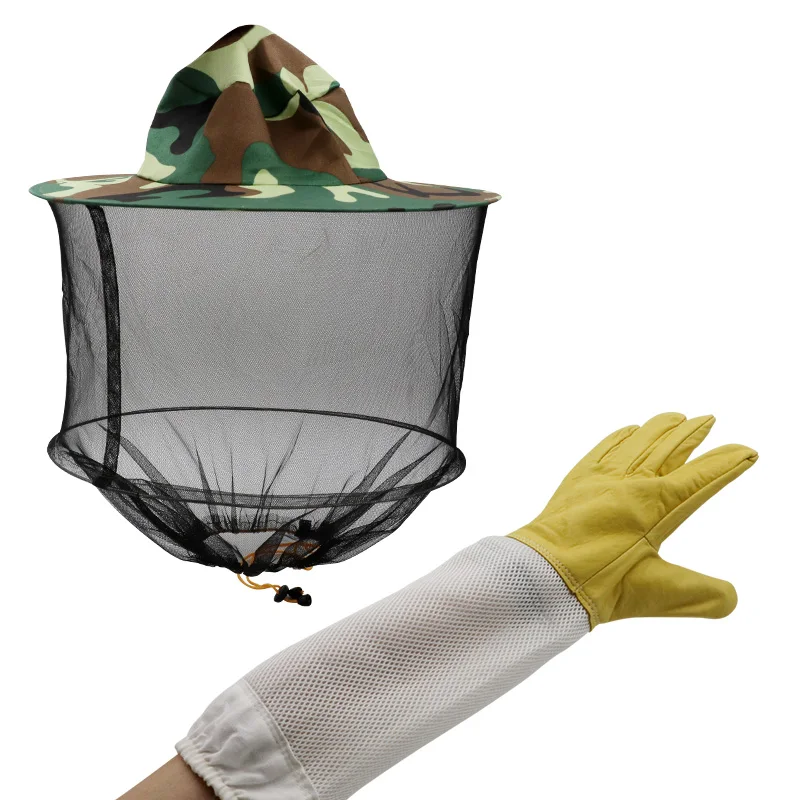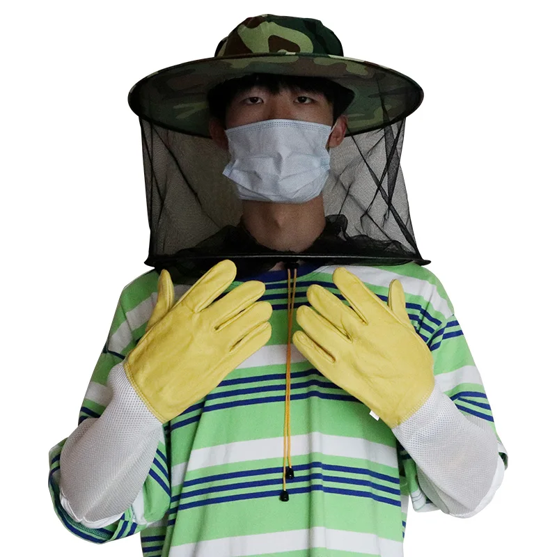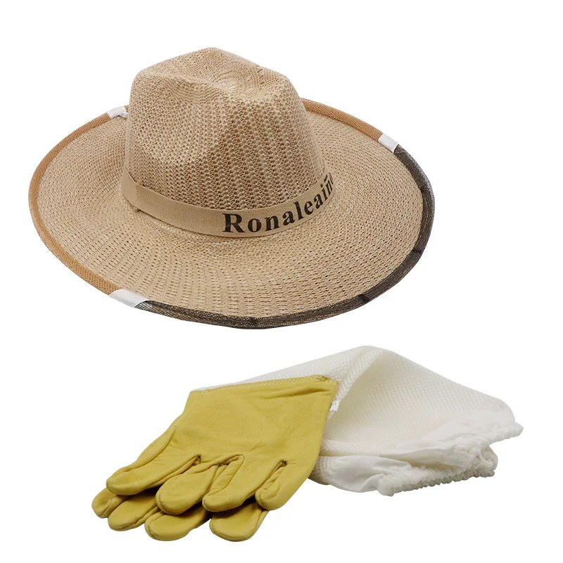 Kit de ropa protectora de apicultura, guantes de cuero y 1 piezas, antiabejas y picaduras, sombrero de vaquero, herramienta de apicultura transpirable, 1 par