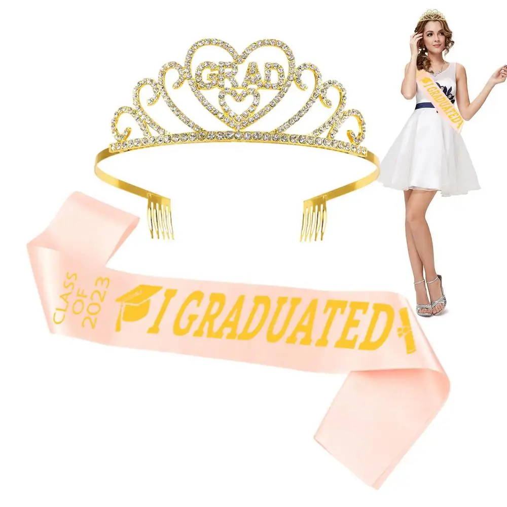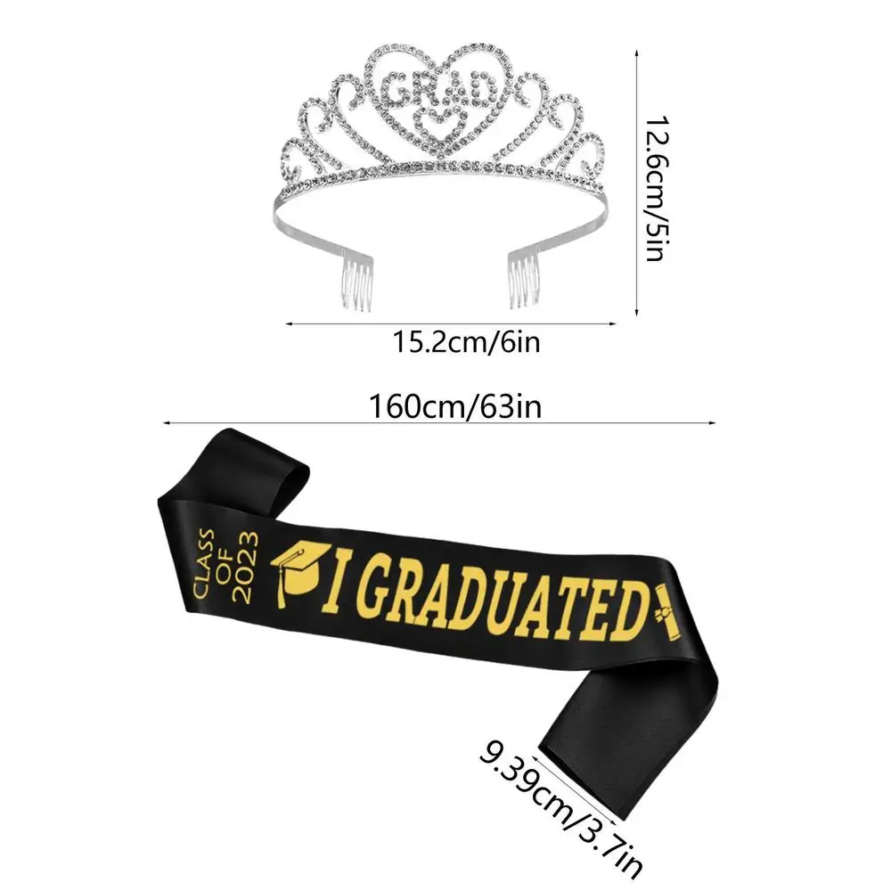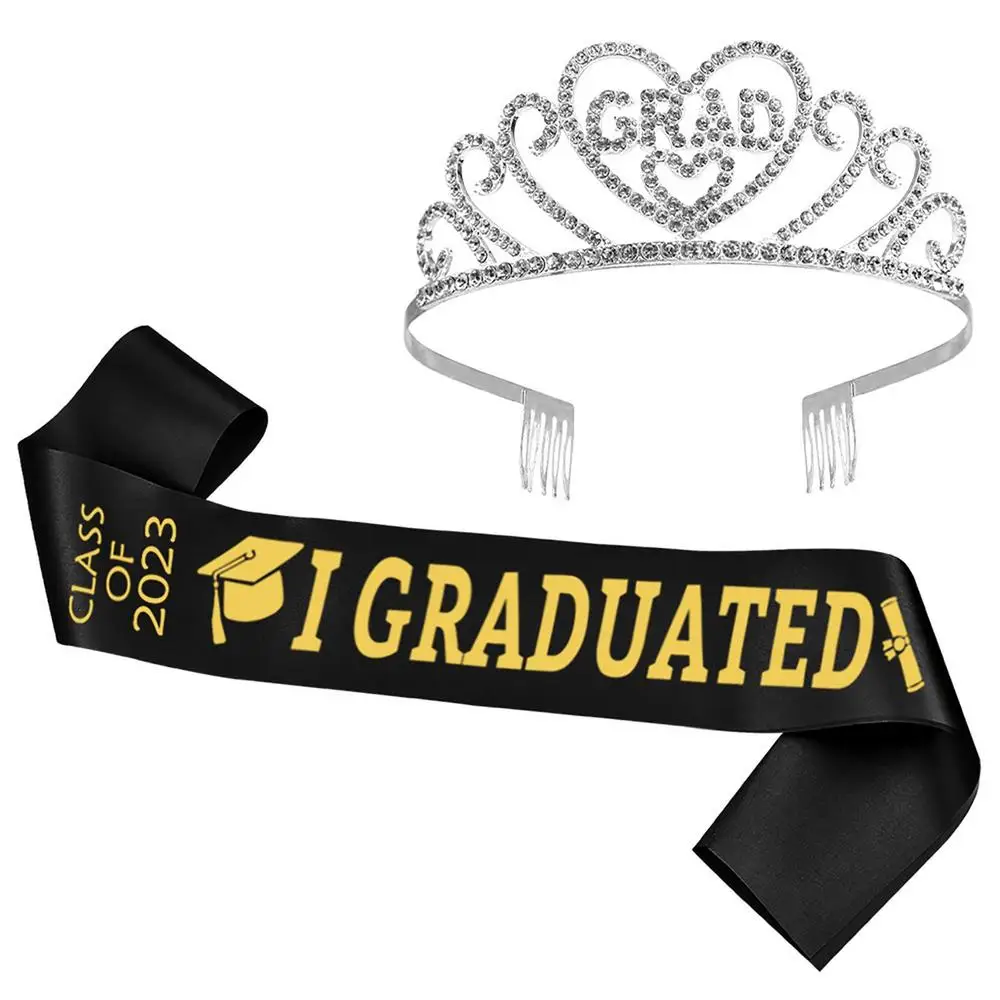 2. Corona de piedra de cristal: este kit de suministros para fiestas de graduación tiene una corona brillante con letras "graduadas" y piedras de cristal que brillan con la luz. La corona también tiene un cinturón de satén que es elegante y cómodo.
