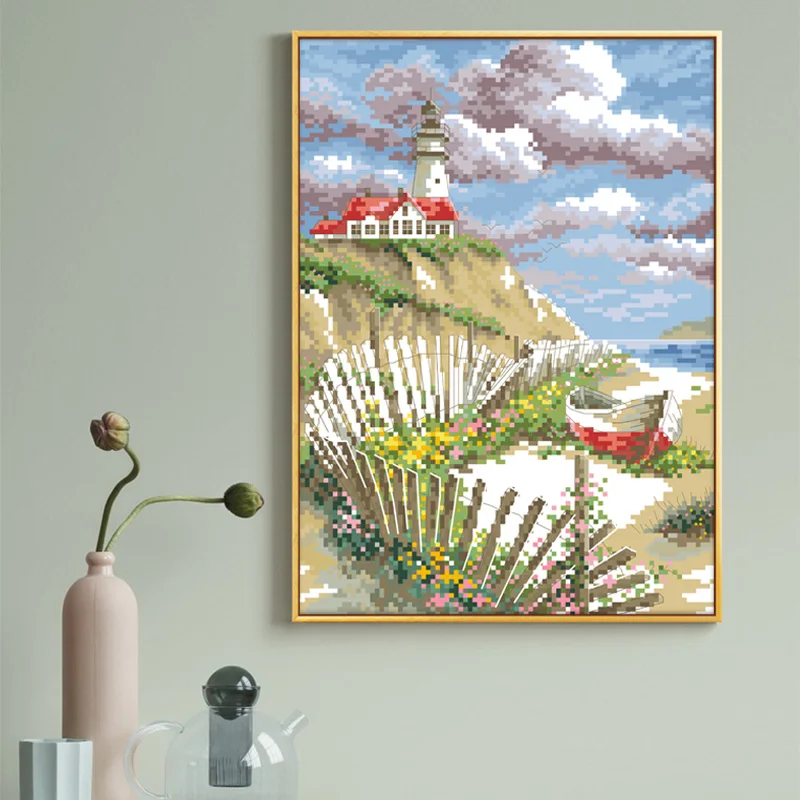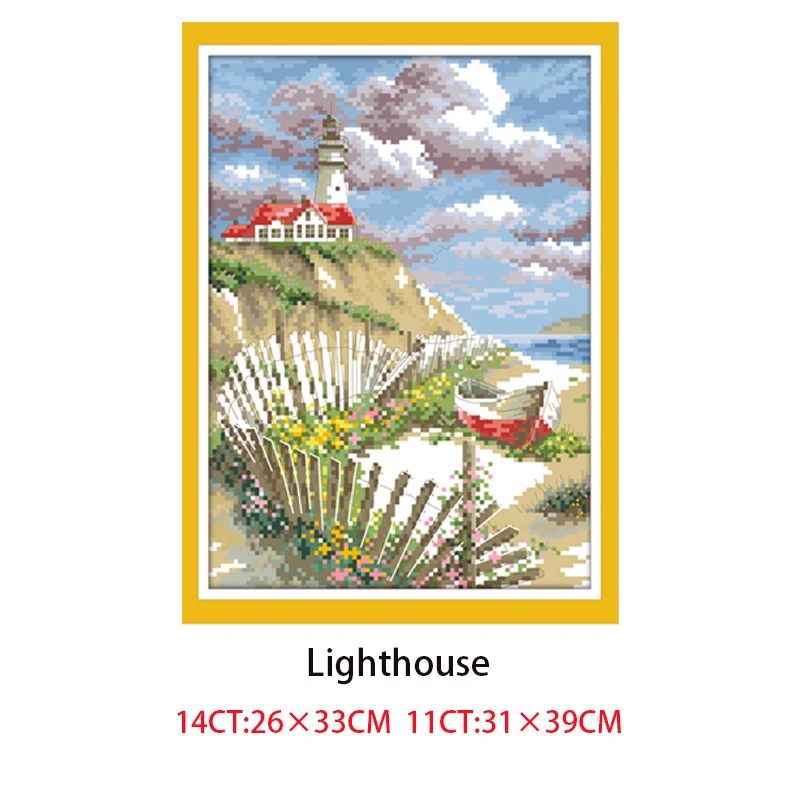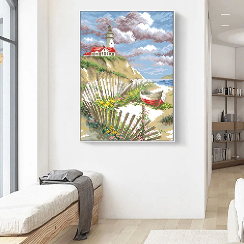 Kits de bordado de cuentas de punto de cruz chino de faro 11CT 14CT Diy juego de artesanía de costura hecha a mano decoración del hogar pintura
