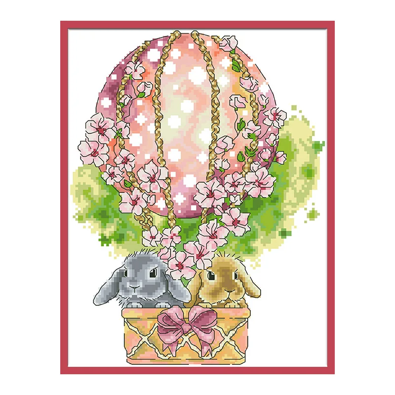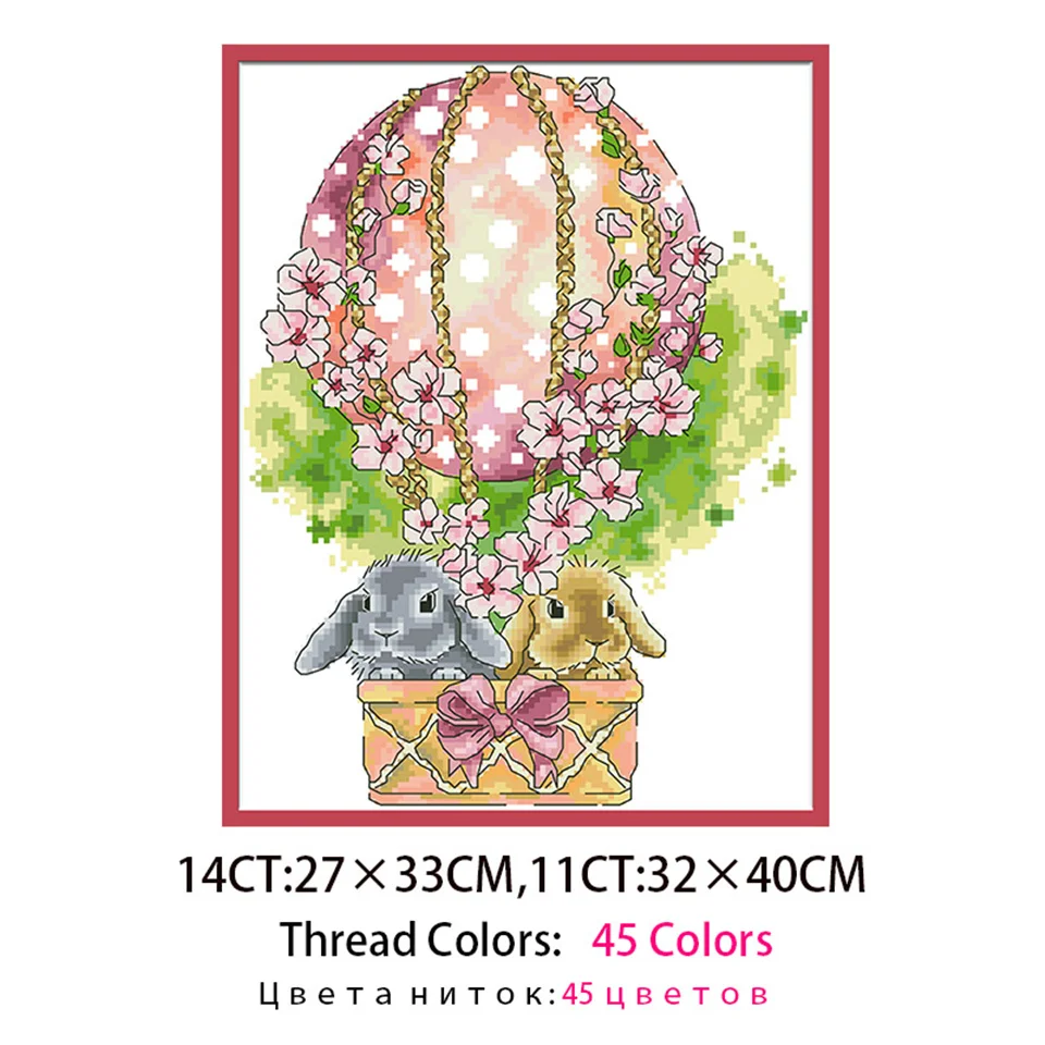 Kit de bordado con patrones de punto de cruz de globo aerostático de conejito, juegos de costura impresos, 11CT, 14CT, pintura de decoración del hogar hecha a mano Diy