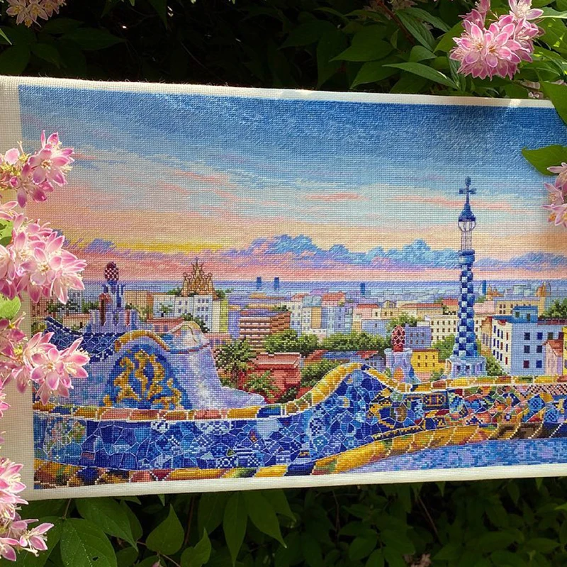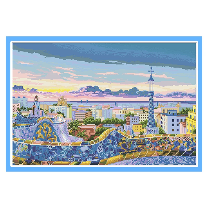 The Blue Barcelona Park punto de cruz 11CT 14CT Kits de bordado conjunto de artesanía de costura lienzo sin imprimir hilo de algodón decoración del hogar