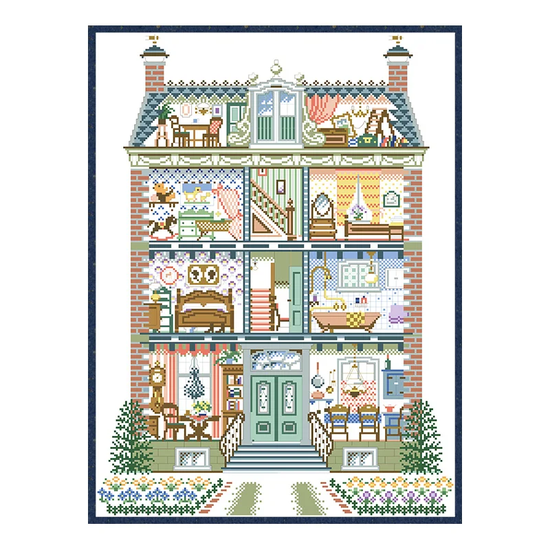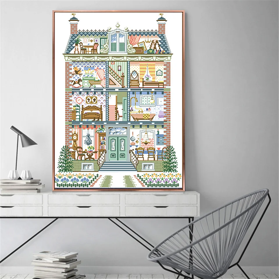Kit de patrones de punto de cruz para Villa acogedora, paquete de bordado en lienzo sin imprimir, juegos de costura de 11CT y 14CT, manualidades DIY, decoración del hogar, pintura