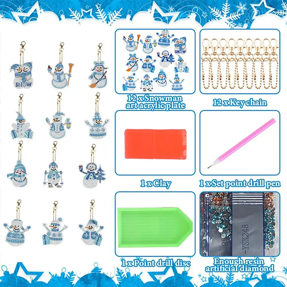 Especificación:Nombre del producto: Llaveros con pintura de diamantes de imitación de muñeco de nieve