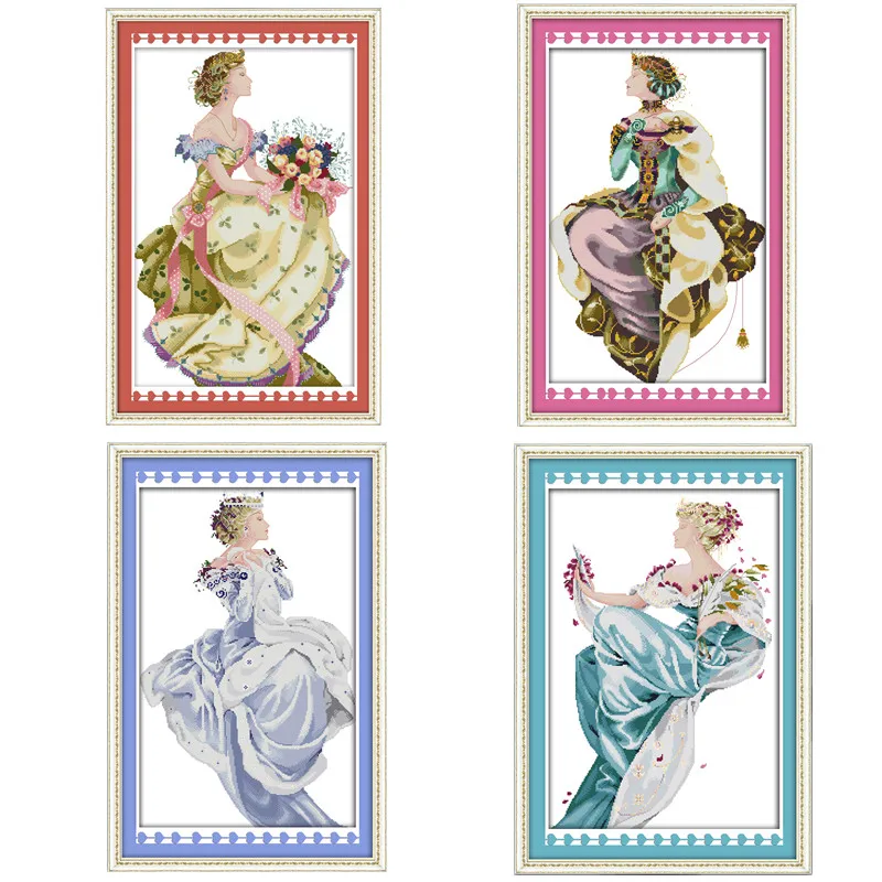 Niñas hermosas de reina de verano de 4 estacionesKits de punto de cruz contados, conjunto de punto de cruz DMC impreso de 11CT, Kits de punto de cruz DIY, bordado de costura
