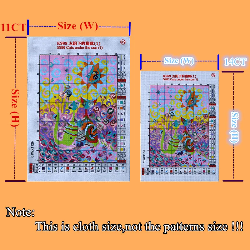 11CT usa hilos de 3 hilos, hilos de 2 hilos para puntada trasera. El patrón ha sido impreso en el algodón, solo necesita rociar como líneas, luego podrá terminar más fácilmente el punto de cruz.(11CT es más fácil que 14CT)