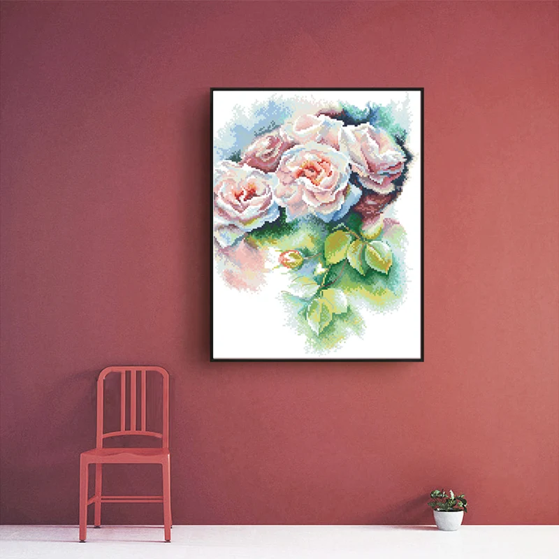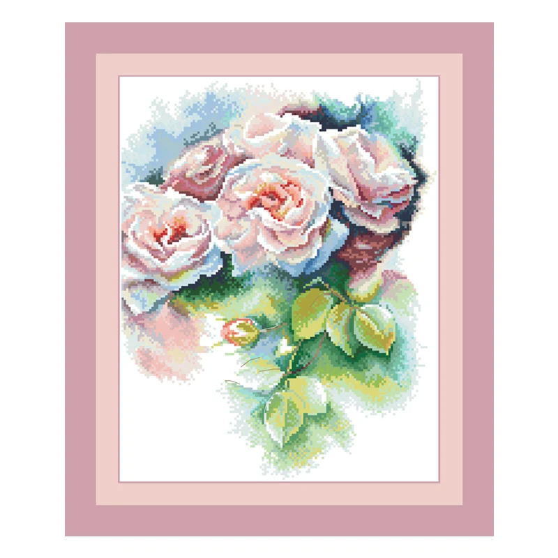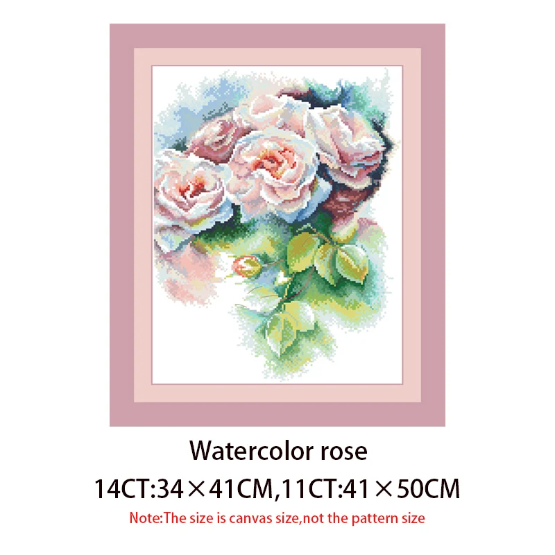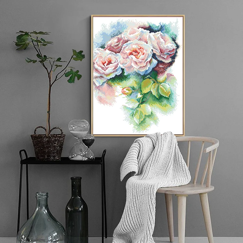 Kits de punto de cruz con estampado de rosas de acuarela, bordado de lienzo con cuentas de flores, 11CT, 14CT, manualidades DIY, costura, pinturas de decoración del hogar