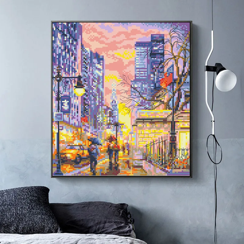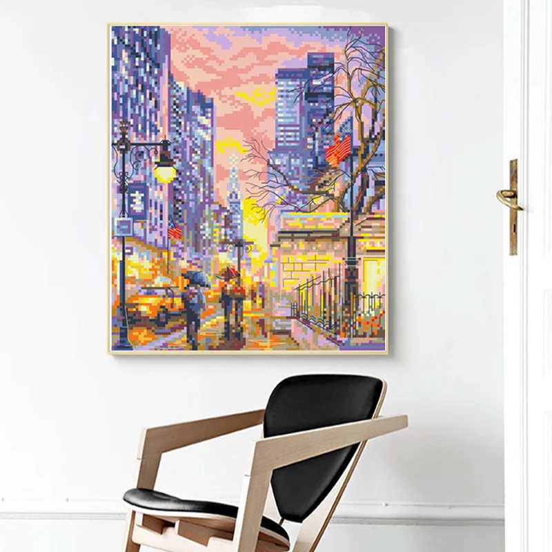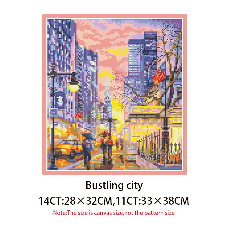 Kits de punto de cruz con patrón de ciudad ostentoso, conjunto de costura bordado de tela impresa, 11CT, 14CT, pintura de decoración del hogar hecha a mano Diy
