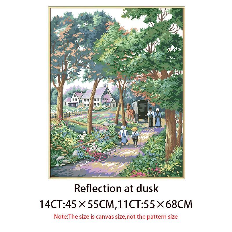 Kits de punto de cruz impresos con reflejo al anochecer, patrones de paisaje, conjuntos de bordado en lienzo, 11CT, 14CT, manualidades DIY, pinturas de decoración del hogar