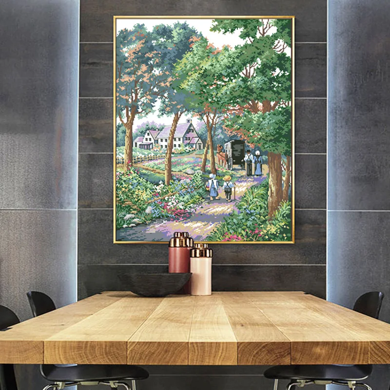 "Patrón impreso de 11CT": hay un patrón impreso en el lienzo.El patrón fue preimpreso en tela, para ayudar a identificar hilos de diferentes colores, se puede lavar después de terminar toda la imagen.Hace que el punto de cruz sea mucho más fácil.