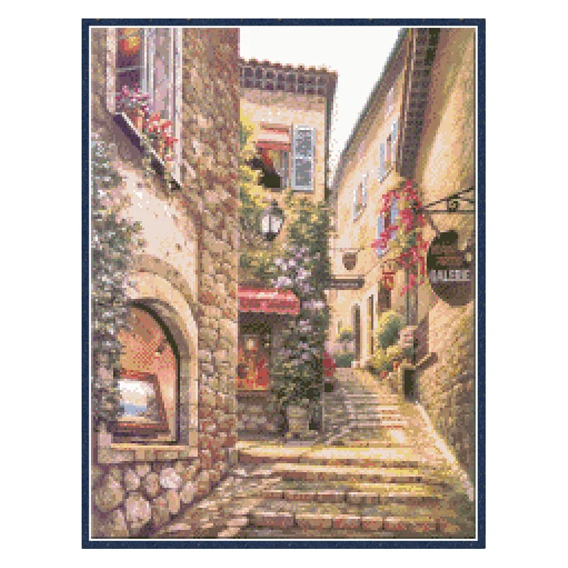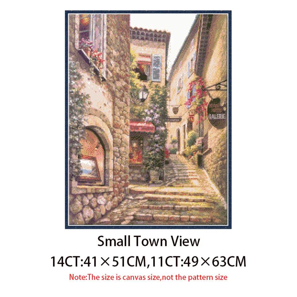 Kits de punto de cruz con Vista de ciudad pequeña, lienzo sin imprimir, juegos de costura de 11CT y 14CT, bordado artesanal, pintura para decoración del hogar