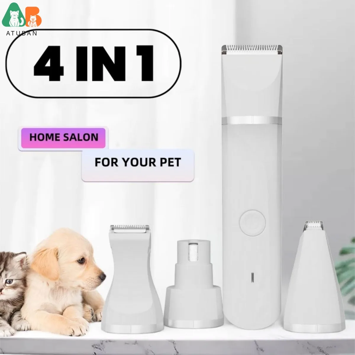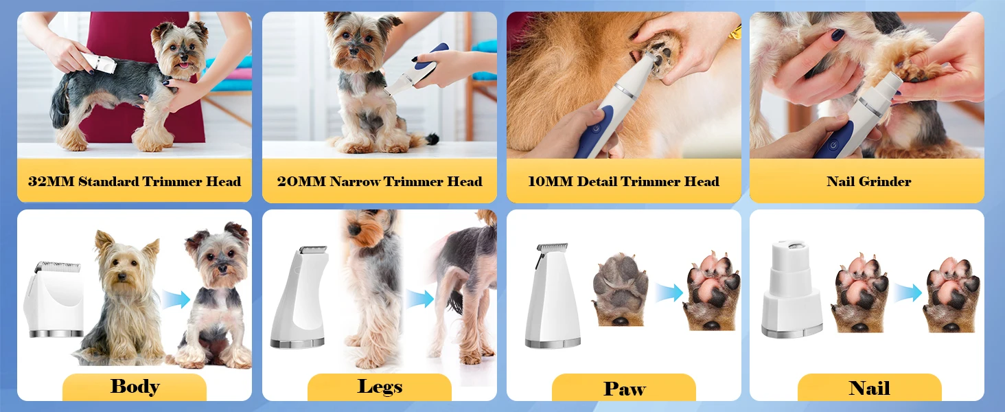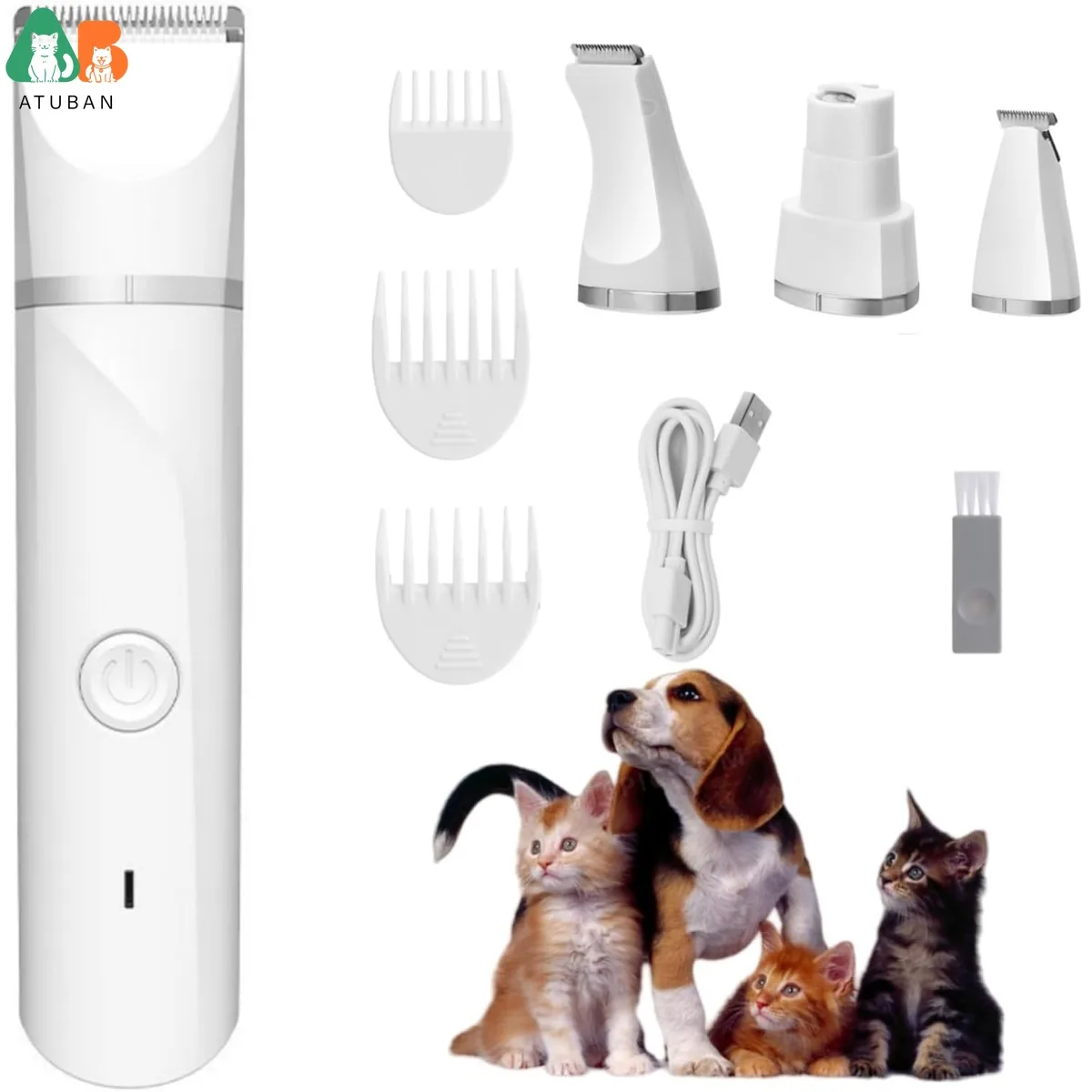 ● Cortadora de pelo para mascotas 4 en 1▶Recortadora de pelo profesional con 4 cuchillas desmontables diferentes, que pueden acicalar a su mascota desde la pata, las orejas, la cola hasta todo el cuerpo, ahorre dinero y disfrute del tiempo de salón en casa.